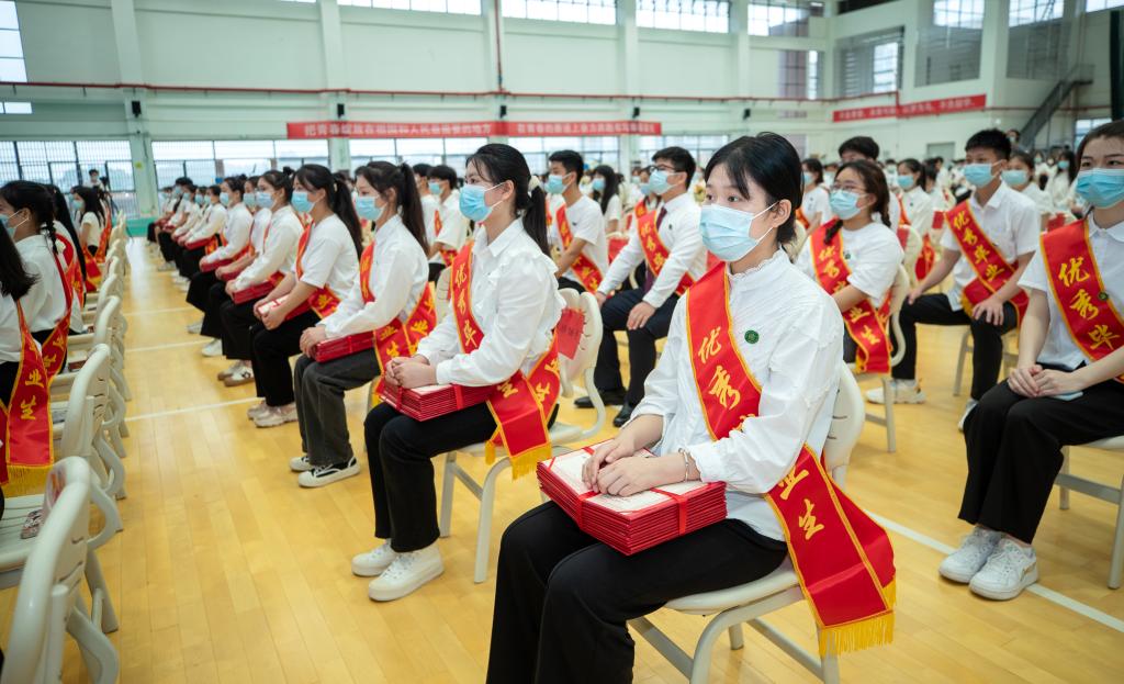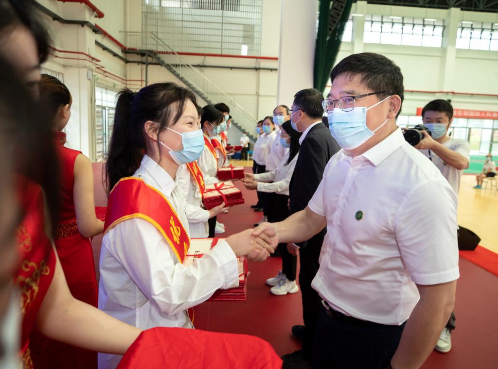 大会表彰了漆云楚等479名2022届优秀大学毕业生,校领导为优秀毕业生代表颁奖。