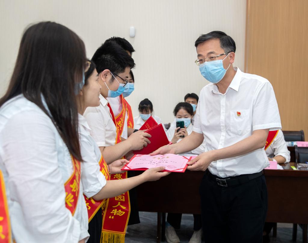 会上,施旸宣读了江西省“优秀共青团员”、宜春市“青年五四奖章”、宜春市“两红两优”名单。紧接着,大会表彰了英国上市公司3652022年“两红两优”、英国上市公司365“校园人物”等荣誉称号获得集体和个人,相关与会领导为获奖集体及个人颁奖。