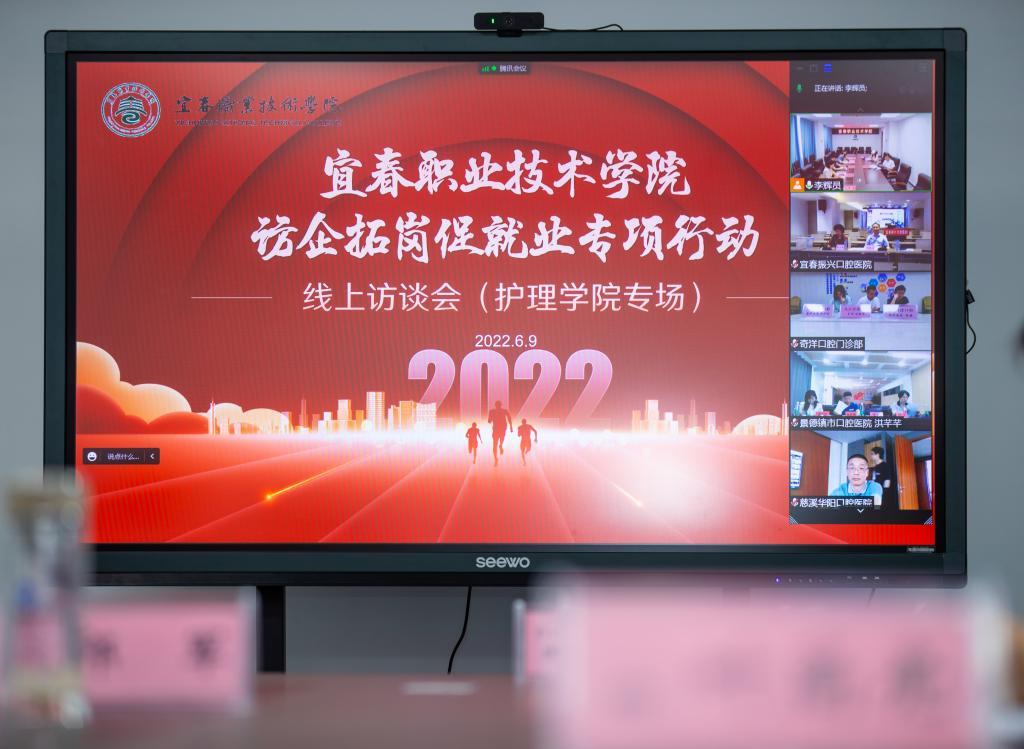 本站讯(护理学院 易国萍)为贯彻落实党中央、国务院关于高校毕业生就业工作的决策部署,进一步开源拓岗。6月9日下午,护理学院举办口腔护理方向访企拓岗促就业云端访谈会,校党委副书记、校长邱军,副校长易滨秀,护理学院院长熊杰平,实习就业处副处长袁剑峰等同志,与宜春振兴口腔医院、浙江省慈溪华阳口腔医院等省内外12家企业代表齐聚云端,搭建交流平台,共谋合作事宜。护理学院党总支书记胡蓉主持会议。