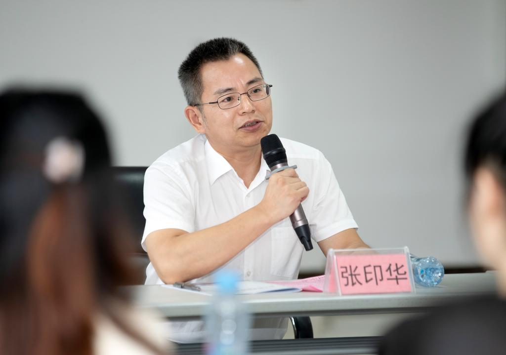 张印华对新教师岗前培训作出充分肯定,认为此次培训组织精心、学员用心、汇报走心。并结合自己的工作经历谈了三点体会:作为职业人,要忠诚事业,坚持自信;作为单位人,要珍惜平台,坚持自强;作为奋斗人,要不负时光,坚持自立。张印华鼓励新教师既要坚持终身学习,成为精通专业的“经师”;又要注重师德修养,成为涵养德行的“人师”。