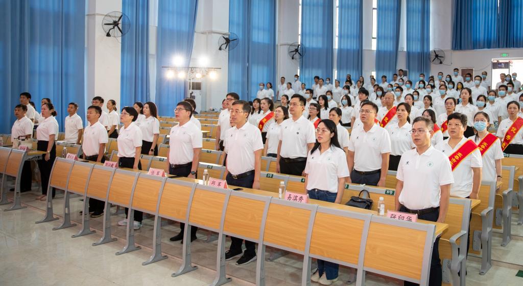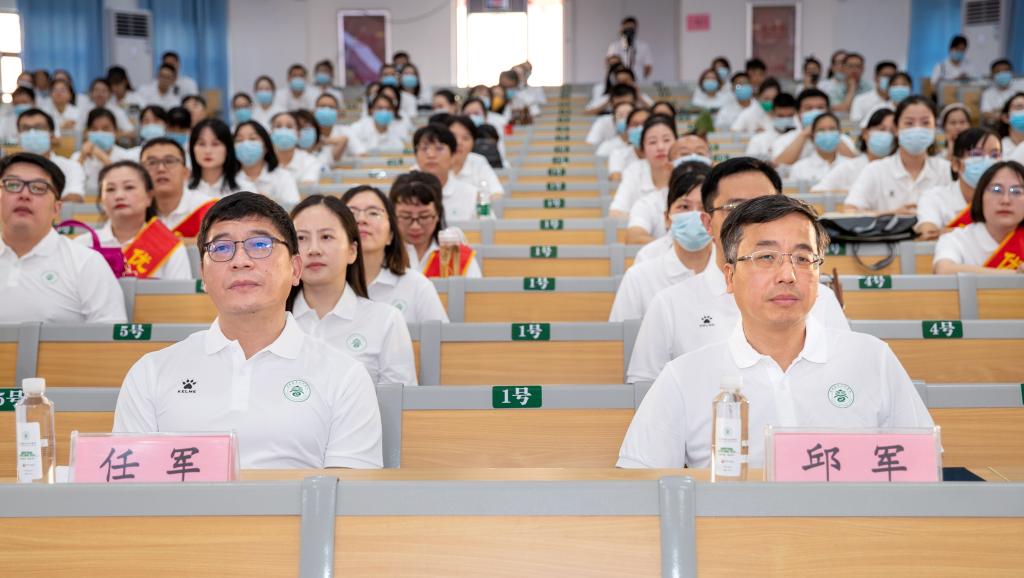 任军带领大家回顾过去学校办学取得的喜人成绩,无论是“江西省示范性高职院校”的创建成功,还是获评“江西省优质专科高职院校”;无论是2016—2018年连续三年在全国职业院校技能大赛高职组护理技能赛项中获得一等奖,还是在今年刚刚结束的全国职业院校技能大赛中斩获护理技能、养老服务技能、创新创业三个赛项二等奖,都离不开学校全体教职工的辛勤付出。随后,他围绕今天的大会主题勉励大家:一要提高政治站位,坚定政治信仰,做党的坚决拥护者;二要坚守初心使命,涵养正气人格,做教育的卓越践行者;三要开拓宽广视野,提升创新思维,做学校发展的奋进者。