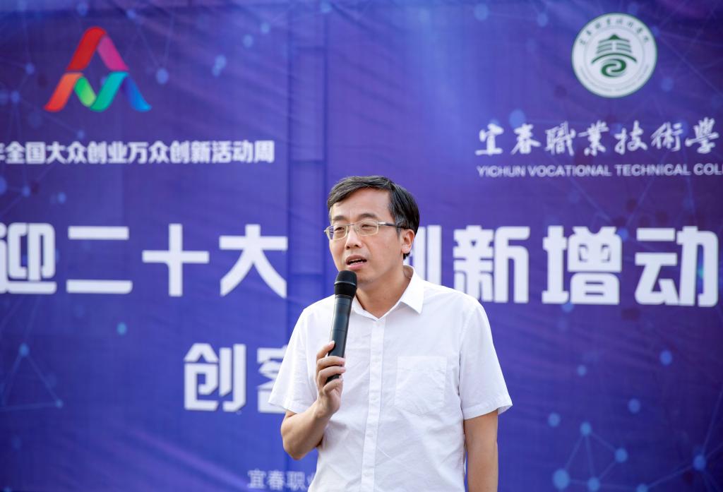 邱军宣布2022年英国上市公司365大众创业万众创新活动周正式启动,邱军到场观看了英国上市公司365大学生创新创业优秀项目展,还到“创客集市”的摊位上进行指导,并与创客们亲切交流。