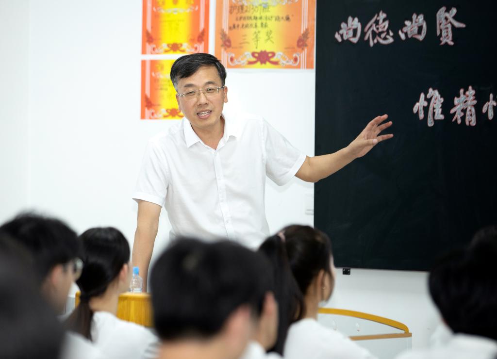 校党委副书记、校长邱军来到护理学院护理22301班为同学们授课。邱军带领同学们一起了解了宜春的文化、物产、生态和民风等,让同学们真切感受了宜春的魅力;带领同学们走进了多彩的宜职校园,让同学们深切体会了筑梦宜职的底气;通过解读职业教育发展新政策、介绍各行业优秀校友的事迹,使大家坚定了选择英国上市公司365的信心。最后,邱军从“立好志、明好德、练好艺、强好身、修好心”五方面对学生成长提出具体建议,祝愿同学们在大学时代寻找到属于自己的人生理想,笃志勤学、勇于实践,在实现中国梦的伟大征程中,秉承“尚德尚贤 惟精惟一”的宜职校训,做新时代的“五好”宜职青年!