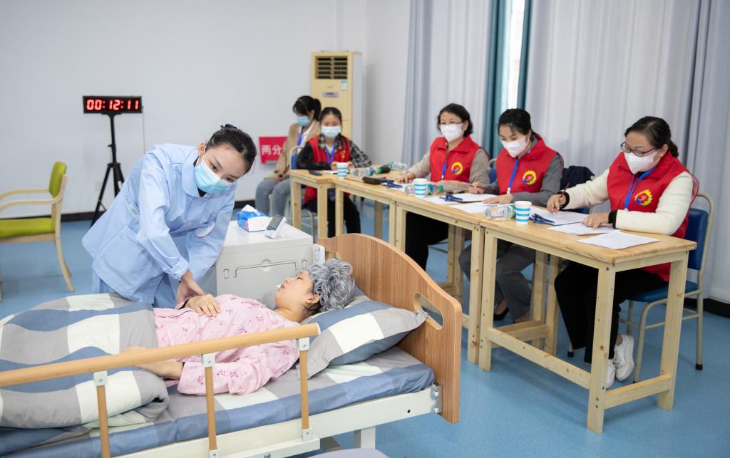 比赛现场真实还原了日常养老护理工作场景。选手们通过模拟真实情境下的现场操作,展示了为老年人开展生活照料、基础护理、康复护理、心理护理、处理紧急突发事件等养老护理的实践应用能力和职业素养。经过10余小时的激烈角逐,16名参赛选手同台竞技,相互切磋,展示风采,以精湛的技艺、严谨的态度全身心投入,赛出了风格,赛出了水平。