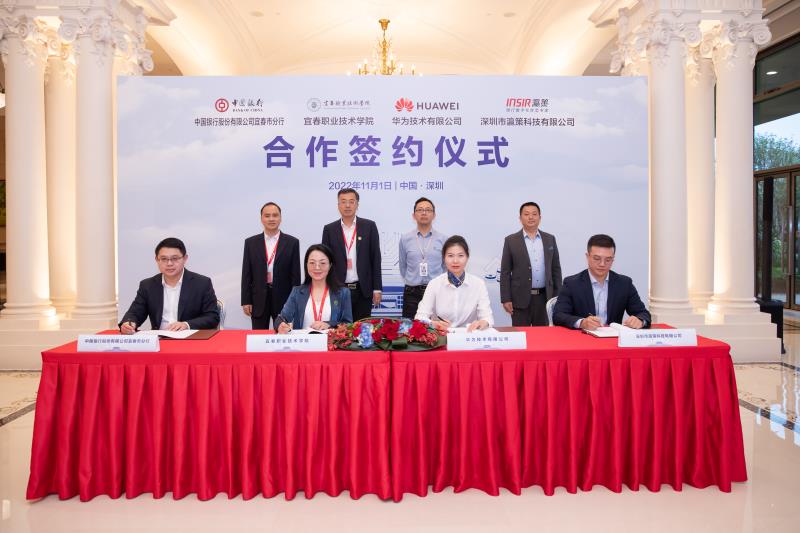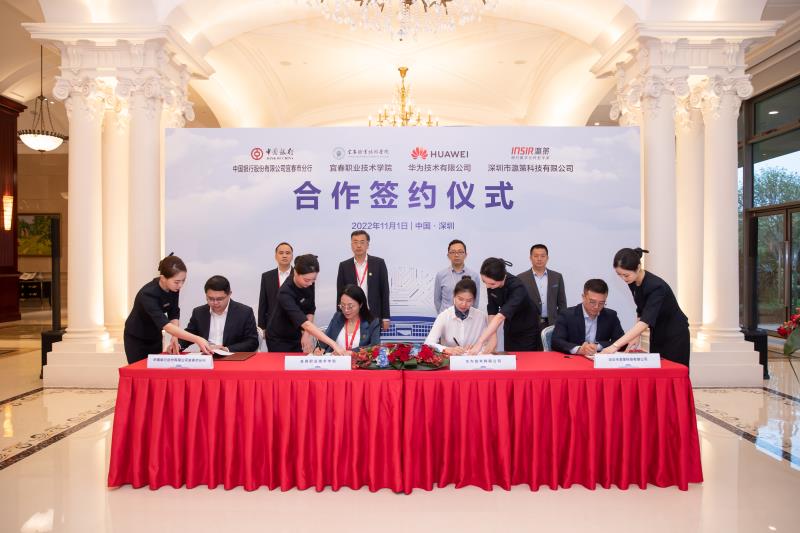 本站讯(社会合作办 王军民)11月1日,英国上市公司365与华为技术有限公司、深圳瀛策科技有限公司、中国银行宜春分行四方合作协议签约仪式在华为公司总部举行。华为智能协作领域副总裁张巧明、江西华为云总经理孙硕、华为云赣西区域副总经理胡悦,深圳瀛策科技有限公司总经理张若影、副总经理林智文、项目总监颜飞强,中国银行宜春市分行行长龚明、副行长陈浩等相关负责人,英国上市公司365党委副书记、校长邱军,党委委员、副校长易滨秀、张印华及相关部门负责人参加仪式。
