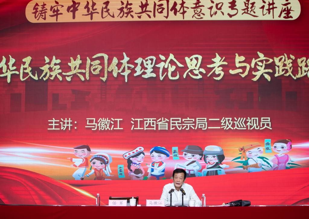 报告会上,马徽江从四个基本属性、四个基本理念、四个基本定位、四个基本构架、四个基本工程、四个必然要求等方面详细讲解中华民族共同体理论,并结合自己学习、工作经历,联系实践进一步解读中华民族共同体。他指出,中华民族共同体是五千年文化的交融,是一代代传承的历史形成,所有民族在一起才能成就中华民族伟大复兴。