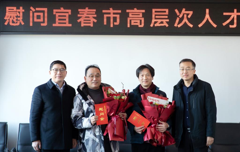 任军代表市委人才办和学校党委向两位专家人才致以节日问候和新春祝福。邱军感谢他们对学校发展出的贡献,并鼓励他们立足岗位,继续发挥自身特长优势,为加快学校高质量发展再立新功。