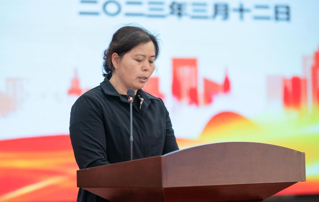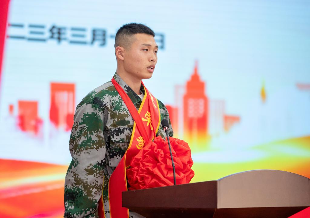 仪式上,张印华宣读了2023年春季18名应征入伍大学生名单。随后,入伍学生王骏杰的家长和入伍学生黄师文先后作为代表上台发言,他们感谢学校给予的机会,黄师文表示在未来的军旅生涯中定会努力奋斗,为学校、为家庭争光。