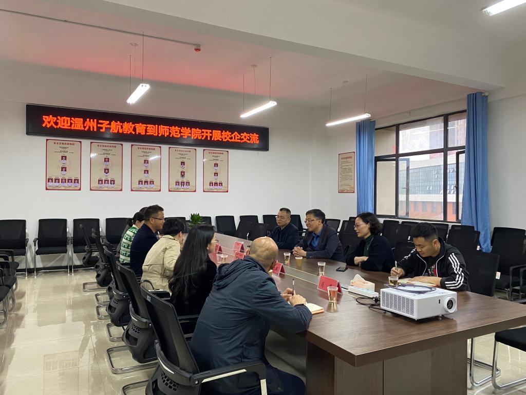 本站讯(师范学院 暨琨)为拓宽校企合作渠道,促进产教融合,探索创新人才培养模式4月11日下午,师范学院在正心楼B204会议室与温州子航教育集团开展校企交流座谈会,党委副书记、校长邱军副校长张印华招生就业处处长彭艳飞及师范学院领导参加座谈。