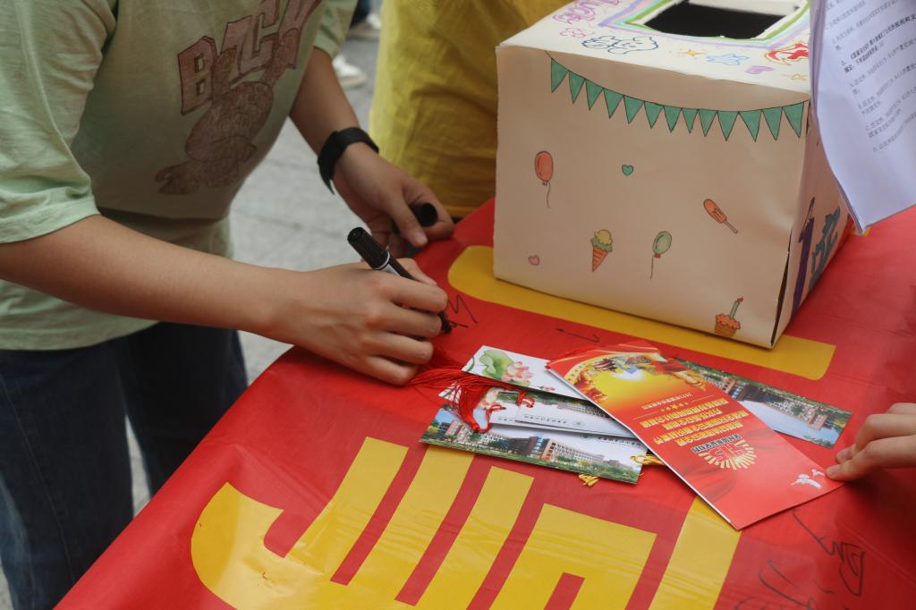 头顶骄阳,热情似火。在党委书记任军的带领下,师生们在写有“国家安全人人有责 国家安全人人可为”的横幅上签下姓名,随后,来到答题区抽题作答、校对答案、领取奖品……现场人头攒动、热闹非凡,活动井然有序地进行。有奖竞答让同学们了解到国家安全的16个方面,牢记维护国家安全是每个公民的义务,树立国家安全意识,在学习生活、网络活动中注意保守秘密,不在社交平台发布不正当的言论和照片等国家安全知识。
