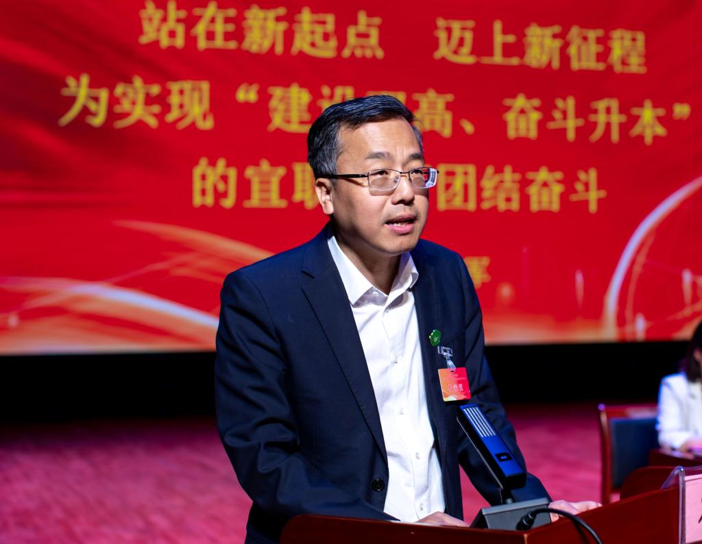邱军以《站在新起点 迈上新征程 为实现“建设双高、奋斗升本的”宜职梦而团结奋斗》为题作行政工作报告。他回顾了过去五年学校发展具有重大现实意义和深远影响的四件大事,总结了学校在数字校园、专业内涵、技能赛事、教学培养、学生教育、产教融合、项目建设、社会服务八方面采取的有效举措、推进的改革创新、实现的突破性进展与取得的标志性成果。