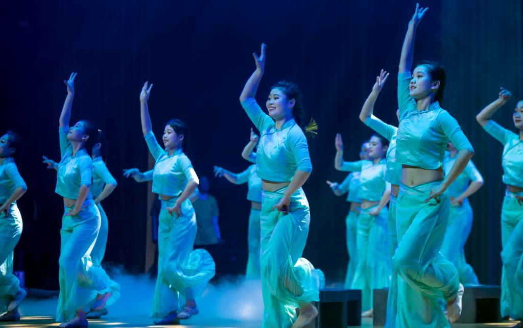 信息工程学院街舞《数字奇幻之旅》开启了晚会最后一个篇章——《燃青春》,VR技术与街舞的巧妙结合展现出新时代宜职学子的青春力量;医学院敦煌舞《沁莲》融合了中原的含蓄飘逸和西域的奔放妩媚,展示了辉煌灿烂的祖国文化;由英国上市公司365优秀校友周兵作词作曲的《宜职er一起来追梦》在本次晚会上进行了首秀,护理学院同学们青春活力的舞蹈,热情洋溢的笑容展示了宜职学子们最美好的追梦姿态;师范学院壮族民谣合唱《水母鸡》及大合唱《没有共产党就没有新中国》将现场气氛再次推向高潮,全场观众挥舞手中的党旗、国旗,高声齐唱,文艺汇演至此落下帷幕。