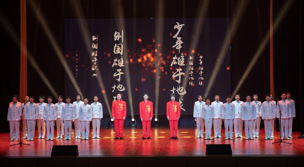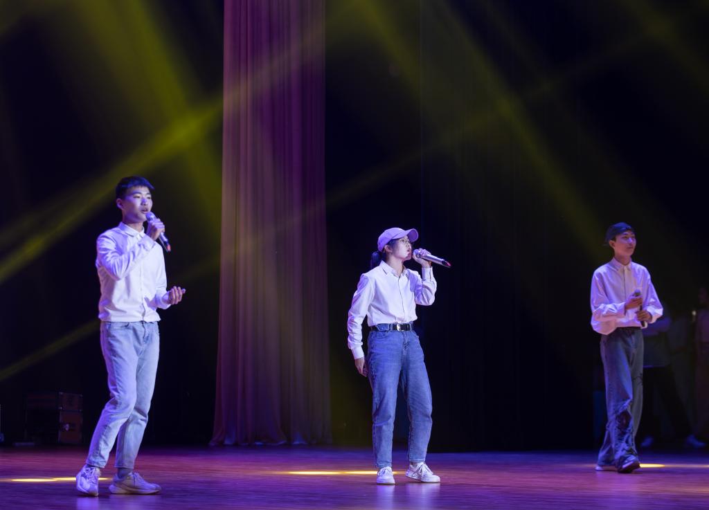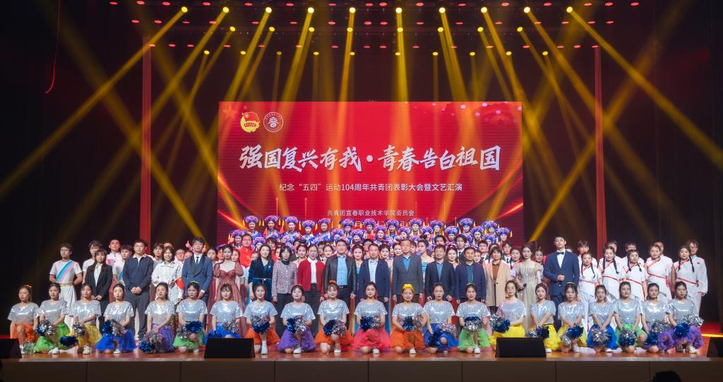 表彰大会结束后,纪念“五四”运动104周年文艺汇演正式开始。艺术与设计学院电声乐队演唱《别在问我什么是迪斯科+花火》迅速点燃现场氛围,全场观众挥舞着荧光棒,开启了文艺汇演的第一篇章——《忆青春》;一条条跃动的红色长扇形象演绎了红色神韵,师范学院舞蹈《红色摇篮》描绘着热血青年致敬革命先辈、传承红色经典的心路历程;艺术与设计学院男声组带来小合唱《那一片红》,着一身戎装,诵一首赞歌,以赤子之心唱响那一片红,诠释着对祖国的无限热爱;师范学院学子朗诵《少年中国说》,唤起宜职少年为中华之崛起而读书的赤诚决心,台下观众热烈响应,齐声合诵。