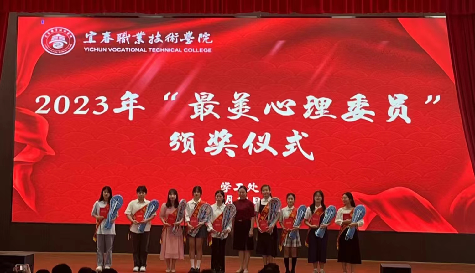 为表彰在心理健康教育工作中表现突出的心理委员,讲座开始前,特举办了最美心理委员颁奖仪式,副校长刘叶建为最美心理委员颁发荣誉证书和奖品。