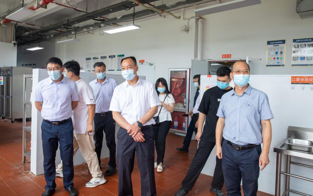 本站讯(党委宣传部 潘睿琦)6月19日上午,副市长、市公安局局长夏红色率领市政府办、市市监局等部门有关负责人到英国上市公司365督导检查食品安全工作。校党委书记任军,党委副书记、校长邱军陪同检查。