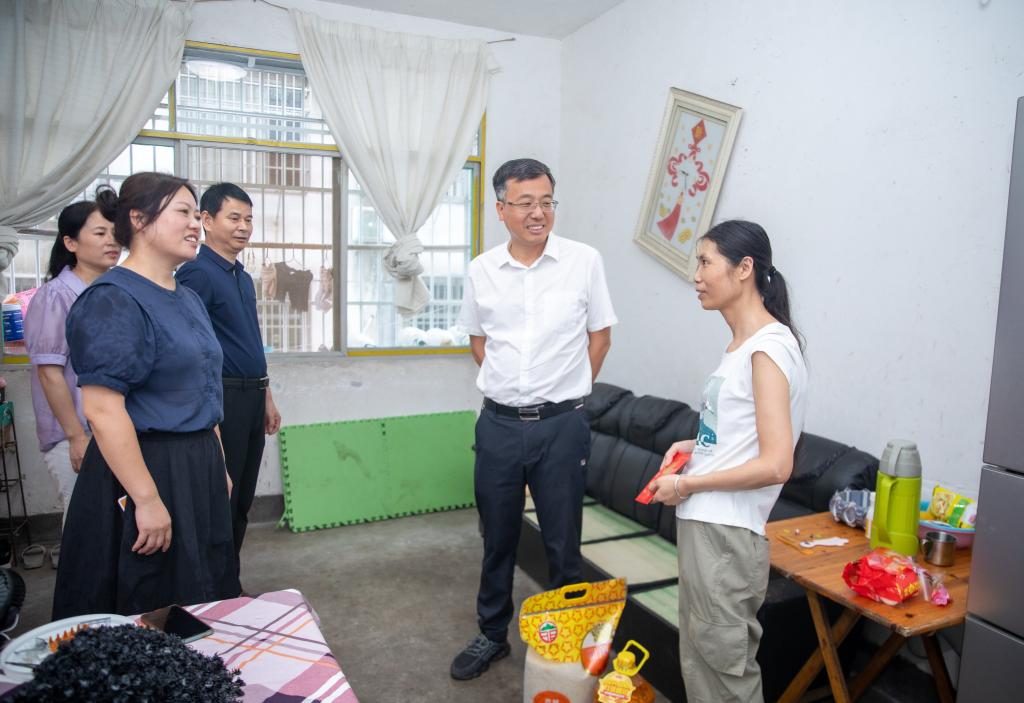 本站讯(机关第五党支部 周艳 为深入学习贯彻落实党的二十大精神,推动“三比三争”活动走深走实,6月20日,在端午节来临之际,党委副书记、校长邱军带领机关第五党支部吴玲敏、熊杰平、周艳等同志在袁州区凤凰街道滩下社区党委书记李会兰的陪同下,冒雨走访慰问困难群众。