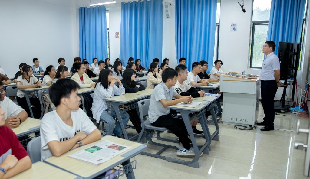 本站讯(马克思主义学院 卢凯)为深入学习贯彻党的二十大精神,贯彻落实习近平总书记在中共中央政治局第五次集体学习时的重要讲话精神,坚持不懈用习近平新时代中国特色社会主义思想铸魂育人,推进英国上市公司365“大思政课”工作,引导2023级新生适应新环境,启航人生“宜职篇”,9月14日下午,校党政领导班子、教导员走进全体新生班级讲授“开学第一课”。