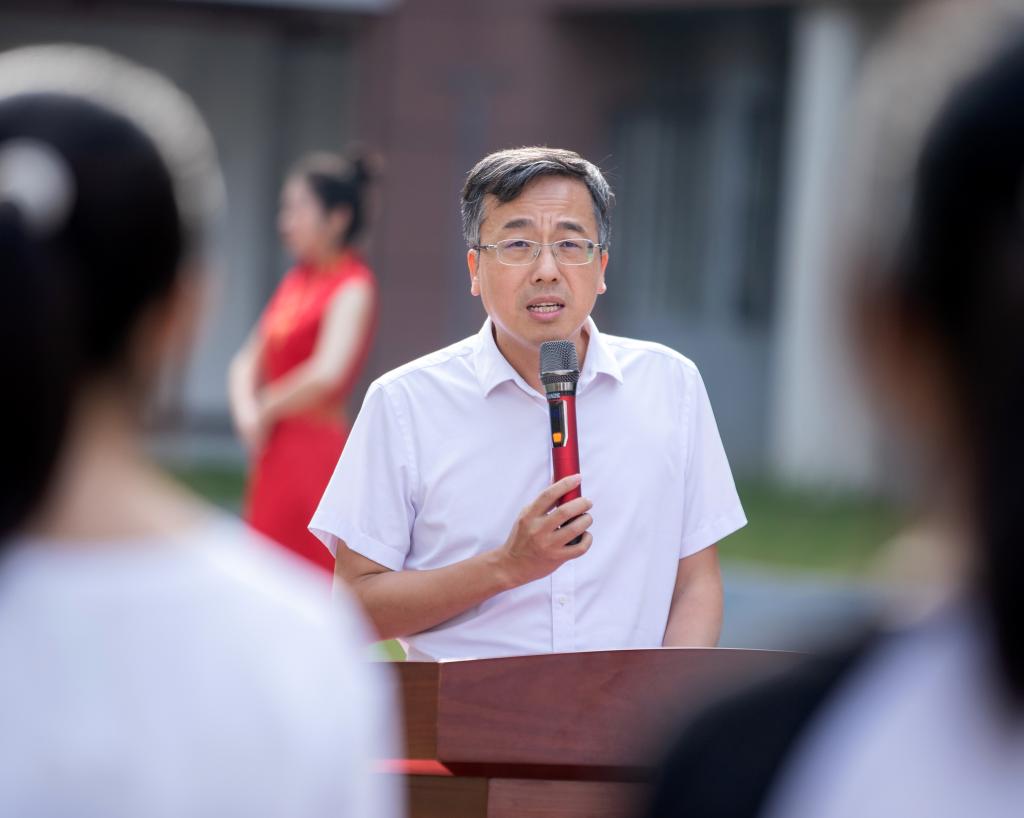 随后,邱军发表讲话,对李晖校友的热心捐赠表示感谢,并高度概括了孔子的教育思想精髓,对在场的所有师生提出殷切希望,他号召大家以先贤孔子为榜样,坚定“躬耕教坛,强国有我”的志向与抱负,牢记孔子的教诲和为人处世之道,为己修身,为国修业,为实现学校的高质量跨越式发展而努力奋斗。最后,全体师生在孔子像前进行庄严的教师誓词宣誓。