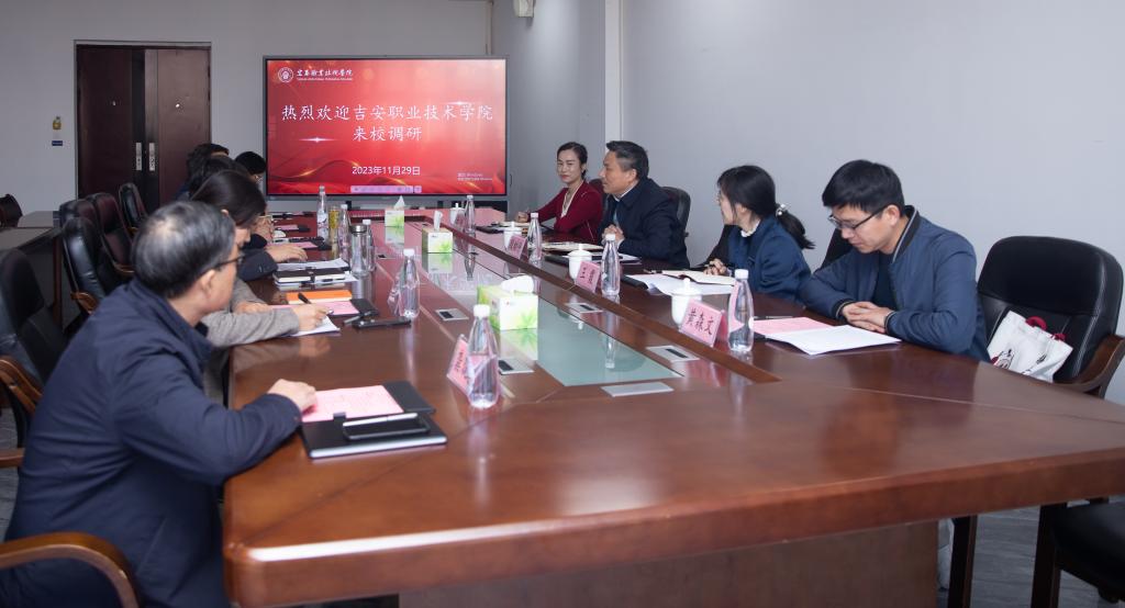 段幼平表示,吉安幼儿高等师范专科学校是一所新成立的院校,面临着办学之初的各类问题,同时身处师范类专业转型发展的浪潮之中,而吉安职业技术学院即将迎来建校十周年庆祝活动,希望向兄弟院校学习借鉴,吸收好思路、好做法,推动工作开展。会上,双方就学校组织架构、编制配置、机构设置、专业转型升级以及招生规模、人才引进、学生管理等问题进行了探讨,重点围绕校庆筹备工作与学校校园文化建设展开深入交流。党委委员、宣传部部长马天娥从队伍组建、前期讨论、考察调研、招标采购、方案设计、史料收集、施工布展等方面对校史展览馆建设的整个过程进行了详细介绍,分享了宝贵经验。