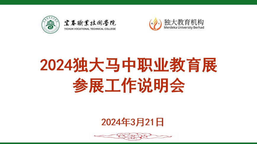 会上,刘海云回顾了“2023年独大-马中职业教育参展”的工作成效,分享了马来西亚中学校长、教师参访团来校参访的过程,详细讲解了2024年职业教育参展工作宣传细则及留学生招生专业信息等,并与参展团的老师们就参展现场的专业分享、宣传过程遇到的问题等进行互动答疑,帮助参展团在展会上更加有效地宣传学校。