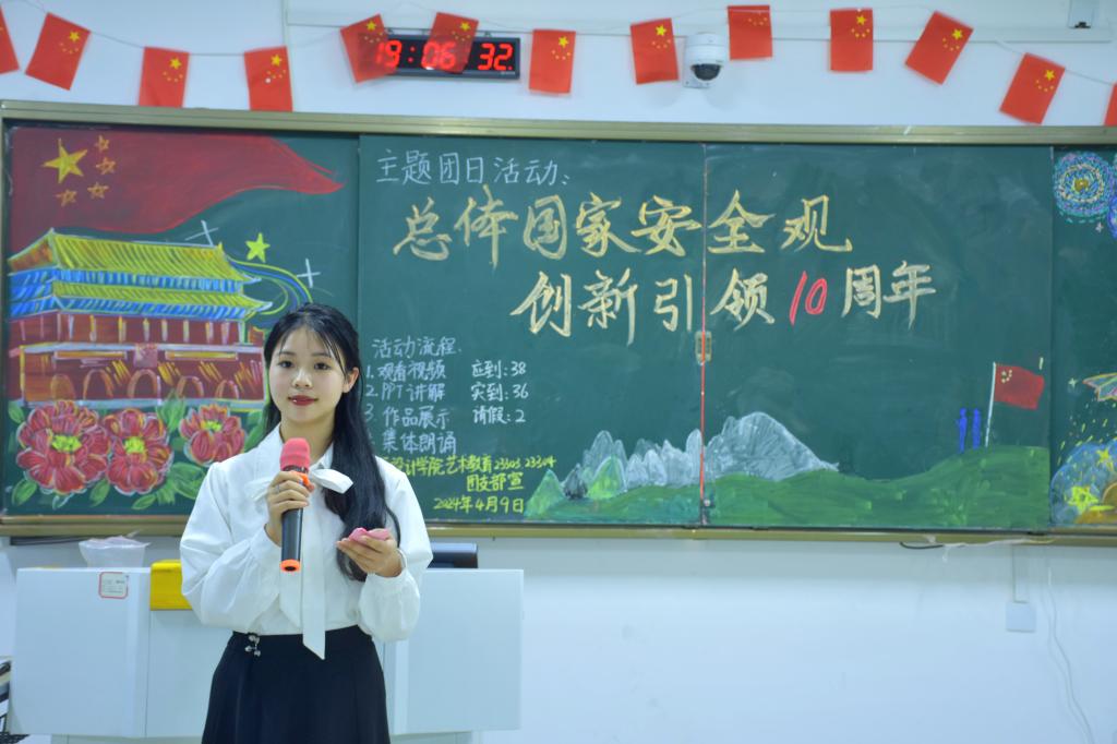 本站讯(团委 甘露 学生记者 张丁凤 吴佳欣)国家安全重如山,重任在肩不畏难。为引导广大青年学子增强国家安全意识,厚植爱国情怀,时刻将国家安全牢记心间,4月9日晚,校团委在全校范围内组织开展“总体国家安全观 创新引领10周年”主题团日活动。