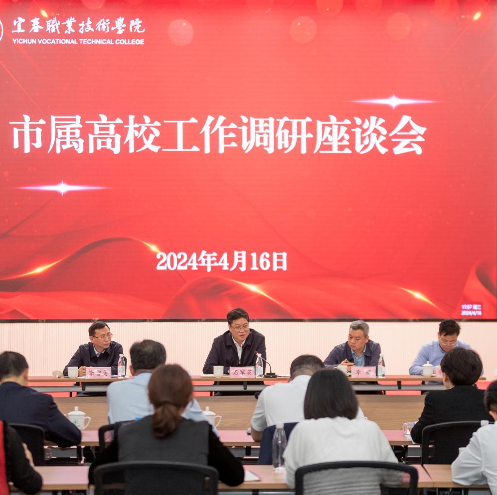 4月16日,市委副书记、市委统战部部长石军英深入市属高校调研并主持召开座谈会。他强调,要深入学习贯彻习近平总书记关于教育的重要论述,全面贯彻党的教育方针,坚持正确办学方向,努力推动高等教育高质量发展。市委副秘书长、办公室主任李鹏市教体局党委书记、局长李智勇,三级调研员余兆辉随同调研。校党委书记任军等陪同调研。
