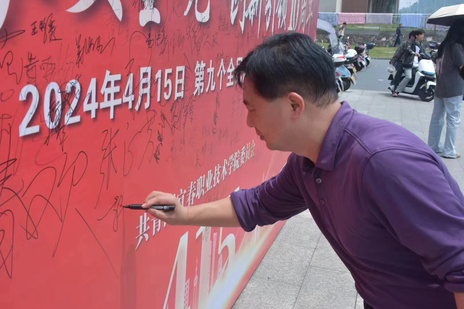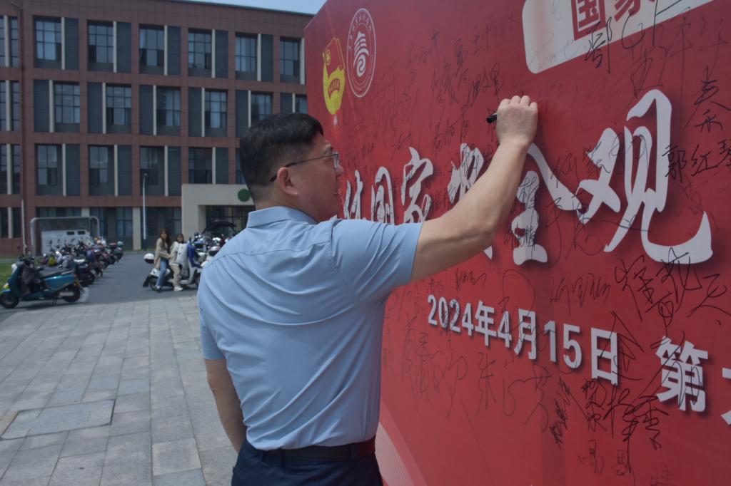 活动现场热闹非凡,精心设计的国家安全知识竞答问题、贴有国家安全标语的套圈礼品,代表着安全隐患的保龄球瓶......强互动、重体验、有意思的通关游戏吸引了不少师生前来参与。近百幅绘画作品围绕总体国家安全观以及政治安全、国土安全、生态安全等国家安全重点领域进行创作,形式多样、构思新颖,独具创意,不仅展现了创作者们对国家安全主题的深刻理解,更通过富有感染力和视觉效果的画面,将国家安全的重要性传递给每一位师生。在国家安全承诺签名墙上,师生们郑重签名,充分彰显了他们捍卫国家安全的坚定决心。