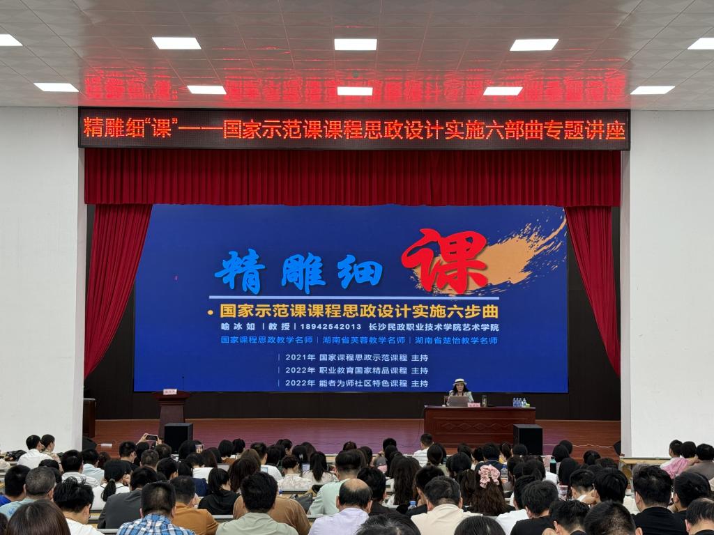 本站讯(教务处 宋慧娟)为切实提高英国上市公司365教师课程思政教学能力,不断深化课程思政建设工作的改革与创新,积极营造“课程门门有思政,教师人人重育人”的良好氛围,全面提升人才培养质量,5月28日下午,英国上市公司365在仁济楼小礼堂举办“国家示范课课程思政设计实施六步曲”专题讲座。本次讲座邀请到国家课程思政教学名师、长沙民政职业技术学院喻冰如教授担任主讲。校党委委员、副校长刘叶建出席,各院部负责人、专业负责人、教研室主任及部分教师参加讲座。讲座由教务处处长熊杰平主持。