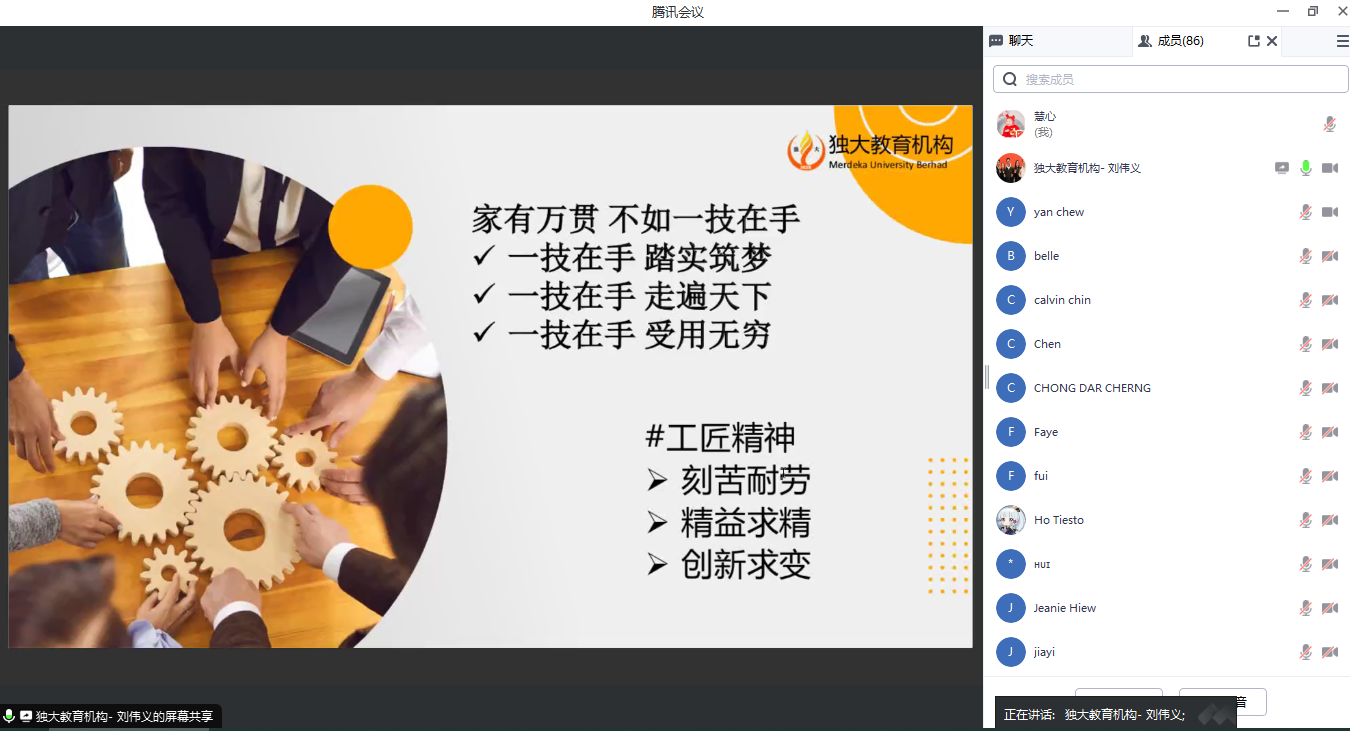 会议在观看英国上市公司365宣传视频中拉开序幕。刘伟义介绍了独大教育机构的组织结构、发展理念及与中国合作院校的情况,并详细讲解马来西亚学生申请中国留学的条件、科系选择、中国职教特点、留学费用及奖学金等。袁琦从信息工程英国上市公司365、虚拟现实技术应用专业特色、课程设置、实训条件及就业方向等方面进行介绍,段雨南则分享经济管理学院的办学历史、办学规模、师资队伍、校企合作、实训条件等信息,并着重介绍了电子商务专业特色、师资、比赛获奖、学生就业及留学生培养等方面的内容。刘海云及两位老师还与主持人、境外家长及学生就招生录取、专升本、就业前景等热点问题进行了互动交流,宣传效果良好。