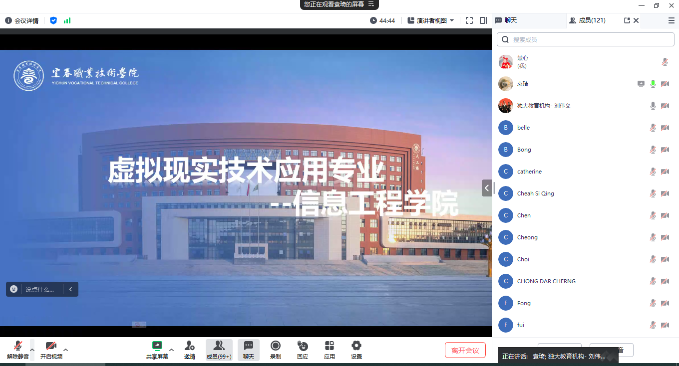 本站讯(国际合作与交流处 杨慧)6月5日晚,校国际合作与交流处处长刘海云、副处长杨慧,信息工程学院虚拟现实技术专业教师袁琦及经管学院电商专业教师段雨南应邀参加由马来西亚独大教育机构主办的2024年“选修职教.人生大放异彩”留学中国Diploma线上讲解会,独大教育机构职业教育委员会主任刘伟义主持此次会议,110余名马来西亚家长及学生听取会议。