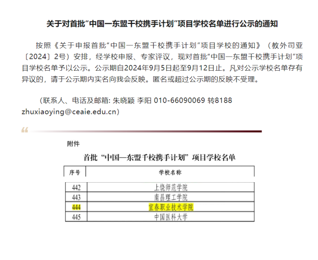据悉,“中国——东盟千校携手计划”是由教育部国际合作与交流司发起,旨在通过深化中国和东盟教育领域互联互通和互学互鉴,助推双方全面战略伙伴关系发展。计划吸引了中国和东盟1500余所院校积极参与,江西省共有16所学校入选。