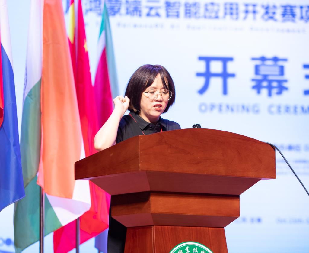 毕红星发表致辞。他代表华为公司对本次大赛的顺利召开表示祝贺,并简要介绍了近年来华为与各大高校在课程体系建设、产业人才培养等方面的合作,他指出,鸿蒙操作系统是华为在操作系统领域的重要创新,具有广阔的创新空间和市场机遇,本次大赛旨在激发学生的创新潜能,培养适应新时代技术需求的高素质技术技能人才,为我国信息技术产业的发展和社会主义现代化建设贡献青春力量。
