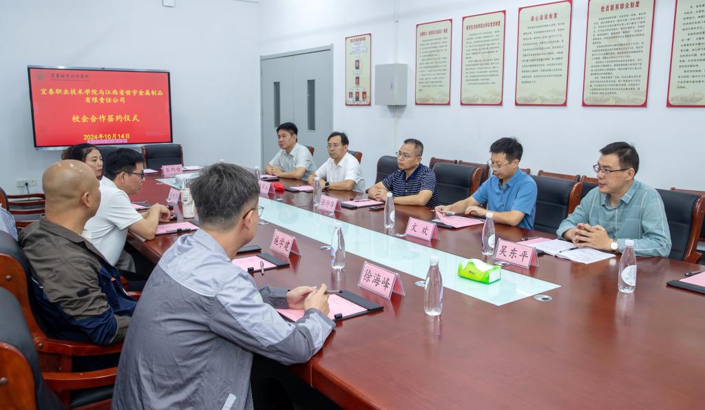 随后,江西世宇金属制品科技有限公司总经理林钧衡发表讲话,强调从学生技能培计、毕业生实习就业、在读生助学帮扶及模块化培养学生等多方面开展合作,能够将企业的实践经验和资源引入校园,帮助学生们更好地了解行业动态,实现职业规范化解决就业,提高就业质量,更好实现校企合作深度发展。与会人员就双方合作开展座谈交流,就此次校庆合作达成共识。