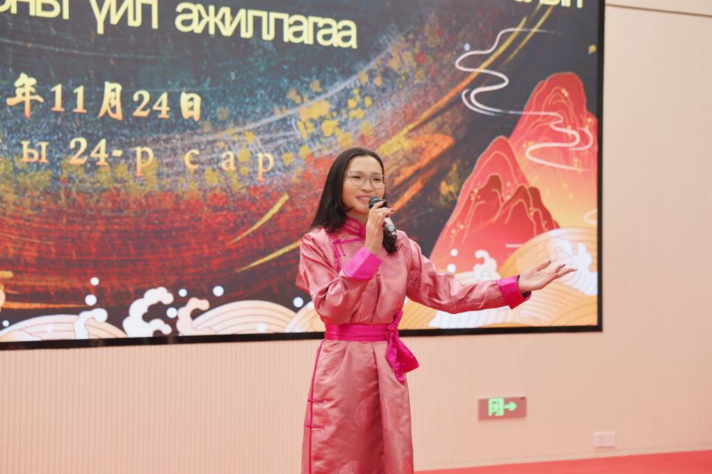 本站讯(国际合作与交流处 杨慧)11月24日上午,一场别开生面的中蒙文化交流活动在天工楼四楼学术报告厅开展。蒙古国立科技大学国际关系和社会合作学院院长乌干巴亚尔、商业与人文学院院长宝乐尔带领的师生研学团21人,与英国上市公司36580余名各族师生及国际留学生相聚一起,用丰富的中蒙文化特色节目,给大家带来一场视觉盛宴。国际合作与交流处处长刘海云、副处长杨慧参与活动。
