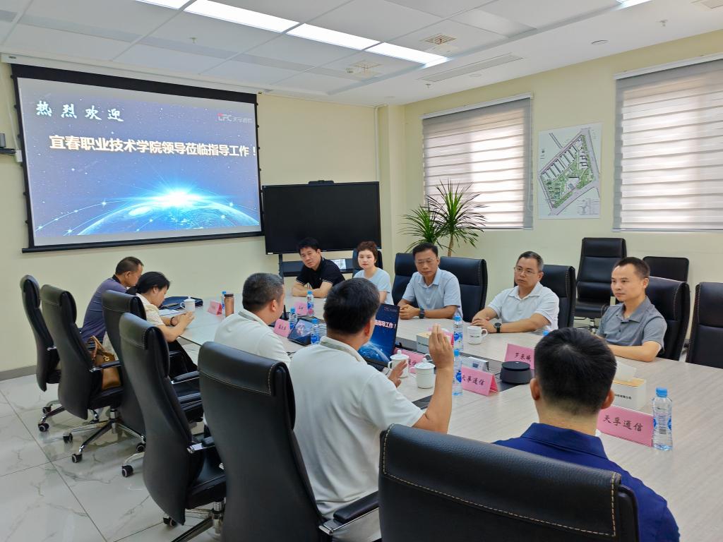 本站讯(信息工程学院 谢小欣)为深化校企协同育人机制,积极响应江西省“1269”行动计划及宜春市“869”产业战略部署,6月18日,校党委副书记、校长李铁刚带队赴江西高安天孚科技有限公司开展访企拓岗专项活动,副校长张印华,招生就业处、信息工程学院、机电与新能源汽车学院的相关负责人陪同调研。