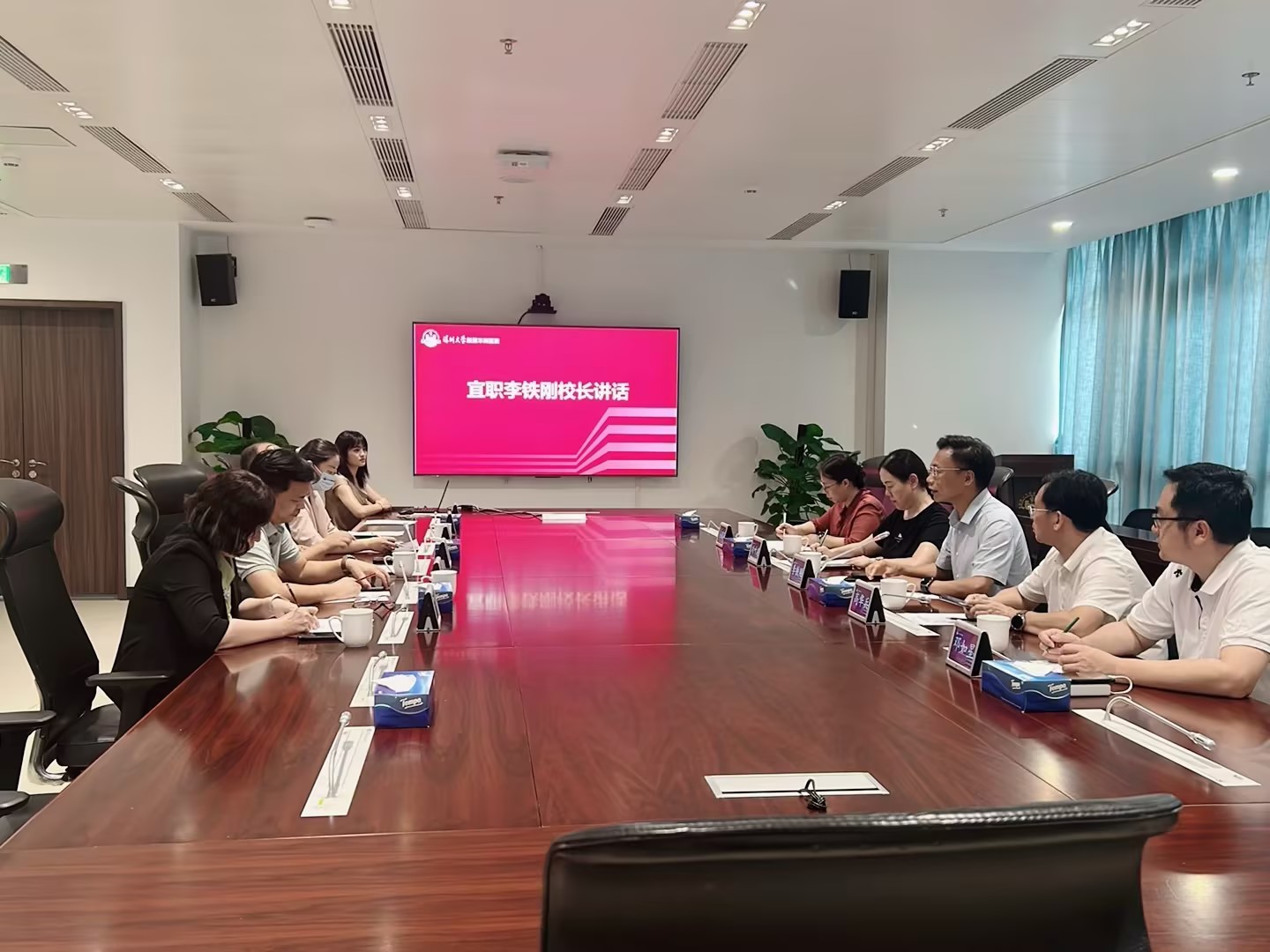 本站讯(护理学院 易国萍)6月24日下午,党委副书记、校长李铁刚一行前往深圳大学附属华南医院对院校合作开展的现代学徒制“华南班”开展实习检查工作,副校长刘叶建、党政办主任高华兵、护理学院院长易国萍、经济管理学院院长邓如星陪同走访。华南医院党委书记肖向东,副院长易石坚、护理教研室护士长唐娜等院方领导及教学骨干热情接待并全程参与。座谈会由华南医院易石坚主持。