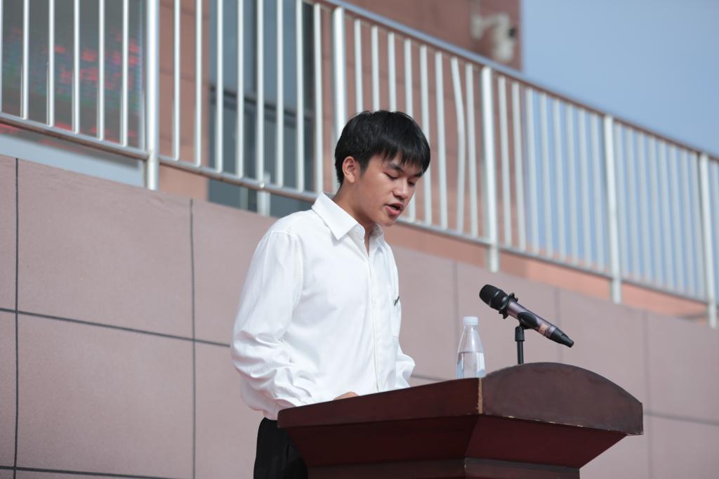 “正心修身,择善而为,品德更加高尚……”在辅导员赖培鑫的带领下,全体新生高举右拳、庄严宣誓。铮铮誓言在校园上空回荡。