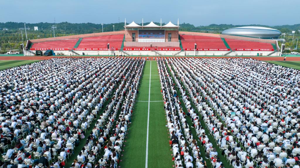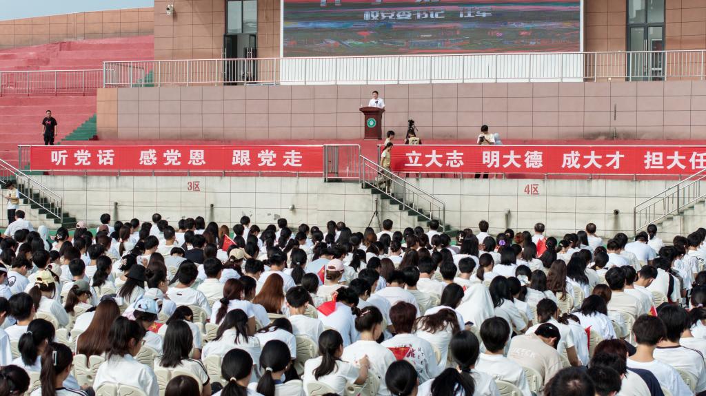9月27日上午,奋发体育场红旗招展、朝气蓬勃。2025级新生开学典礼暨“开学第一课”在此举行。6180名2025级新生以秋光为序,奔赴筑梦宜职的新征程。校党委书记任军,党委副书记、校长李铁刚等党政领导班子成员,相关职能部门、二级学院负责人,新生辅导员共同见证这一时刻。典礼由李铁刚主持。