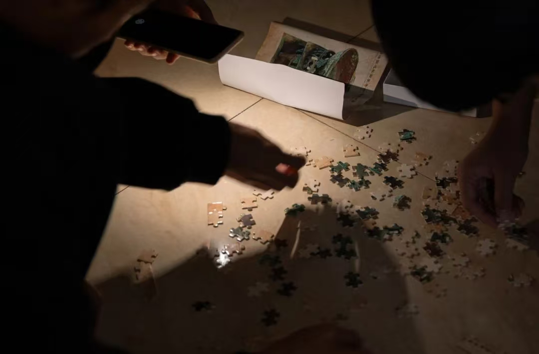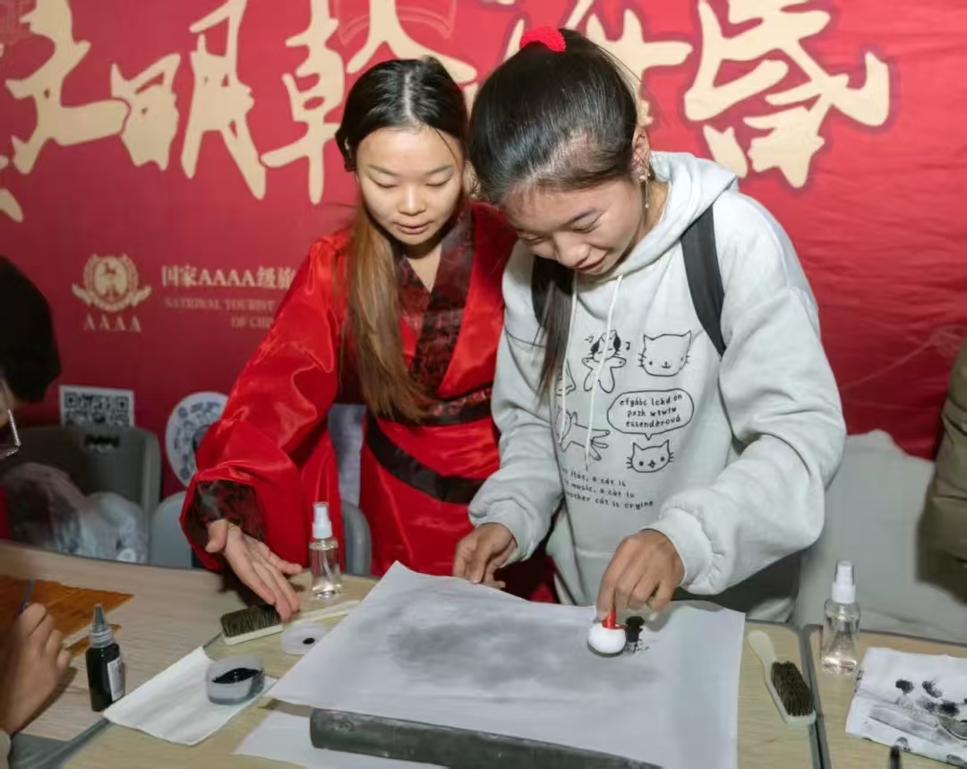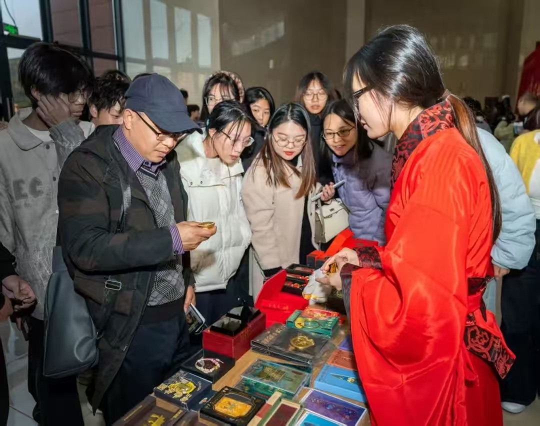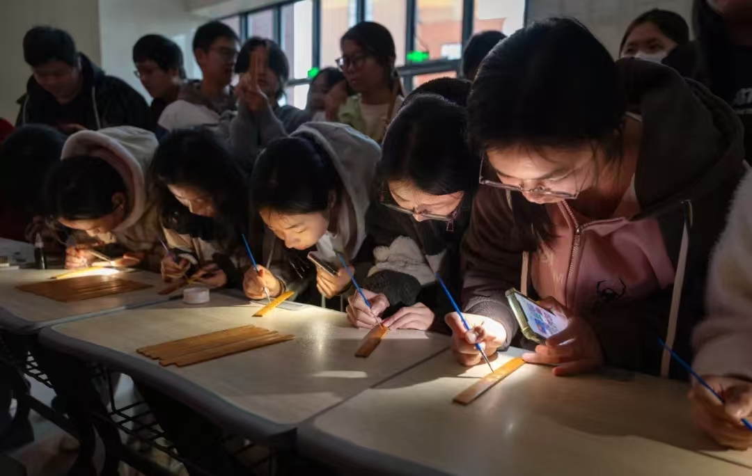 场外设置的文化产品展示与互动体验区吸引了众多师生参与。竹简描金,让千年前的书香跃然指尖;文物拼图,在方寸之间重现青铜重器;拓片拓印,借墨色浸染将古老的纹饰印记恒久留存……通过亲手触摸和制作,沉睡千年的海昏文化以全新的方式焕发生机,在青年学子心中播下文化传承的种子。