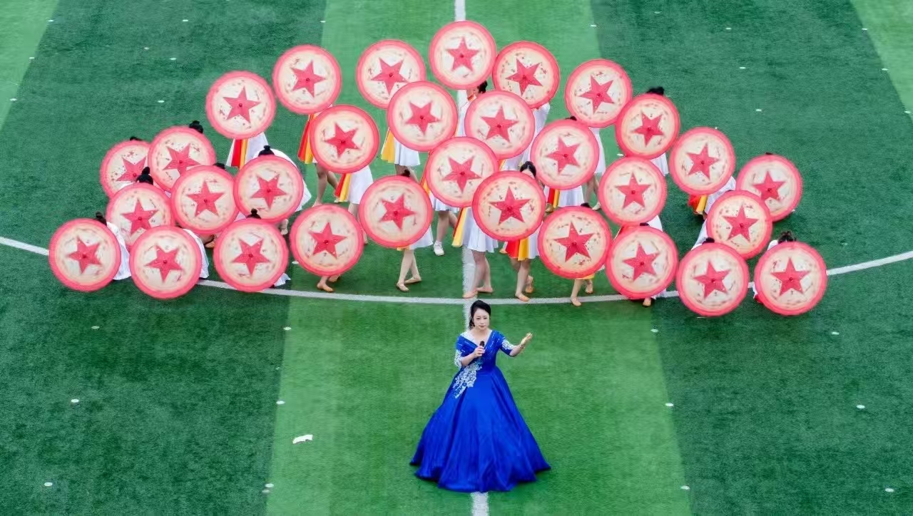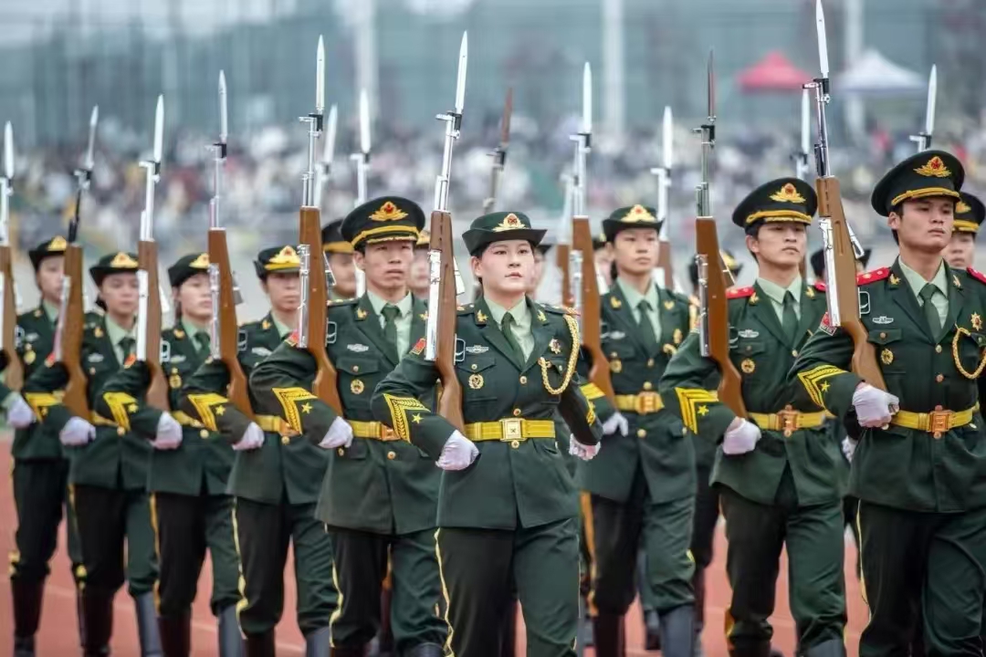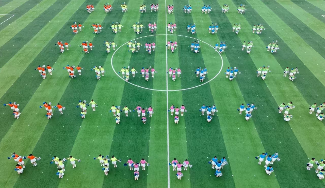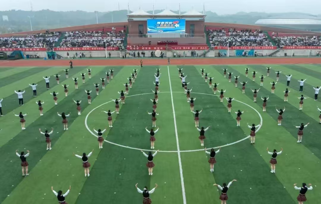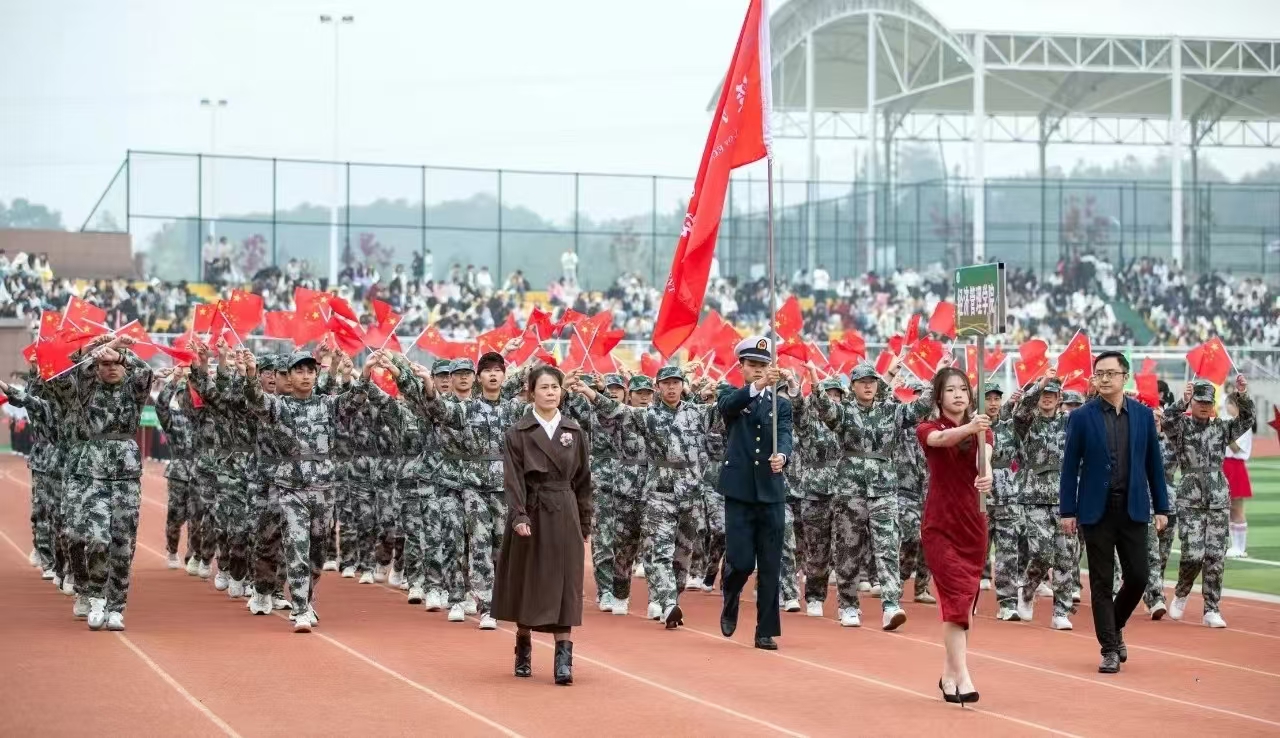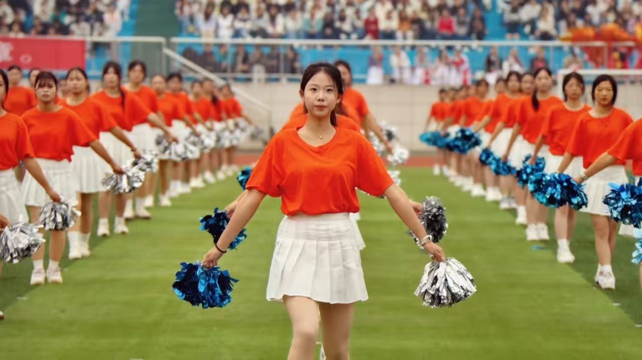 各学院方阵以多样风采绚丽登场。护理学院代表队手持向日葵,在场中巧妙变换出爱心形状,用温暖意象诠释白衣天使以爱守护生命的坚定誓言;师范学院方阵中,绚丽的彩带随舞姿飞扬流转,交织出激情、缤纷的青春图景;艺术与设计学院代表队身着蓝白渐变长裙,步履轻盈,在翻飞的红旗间跃动起舞,尽显艺术气质与蓬勃朝气……其余学院方阵也各具特色,或身披白大褂诠释医者仁心,或身着迷彩服尽显飒爽英姿,或挥动彩扇、红旗,共绘新时代青年学子的昂扬风貌。由马来西亚、蒙古国的留学生组成的方阵首次登场,成为开幕式上一道亮丽的风景线,书写出“技能无国界,文化共交融”的生动篇章。