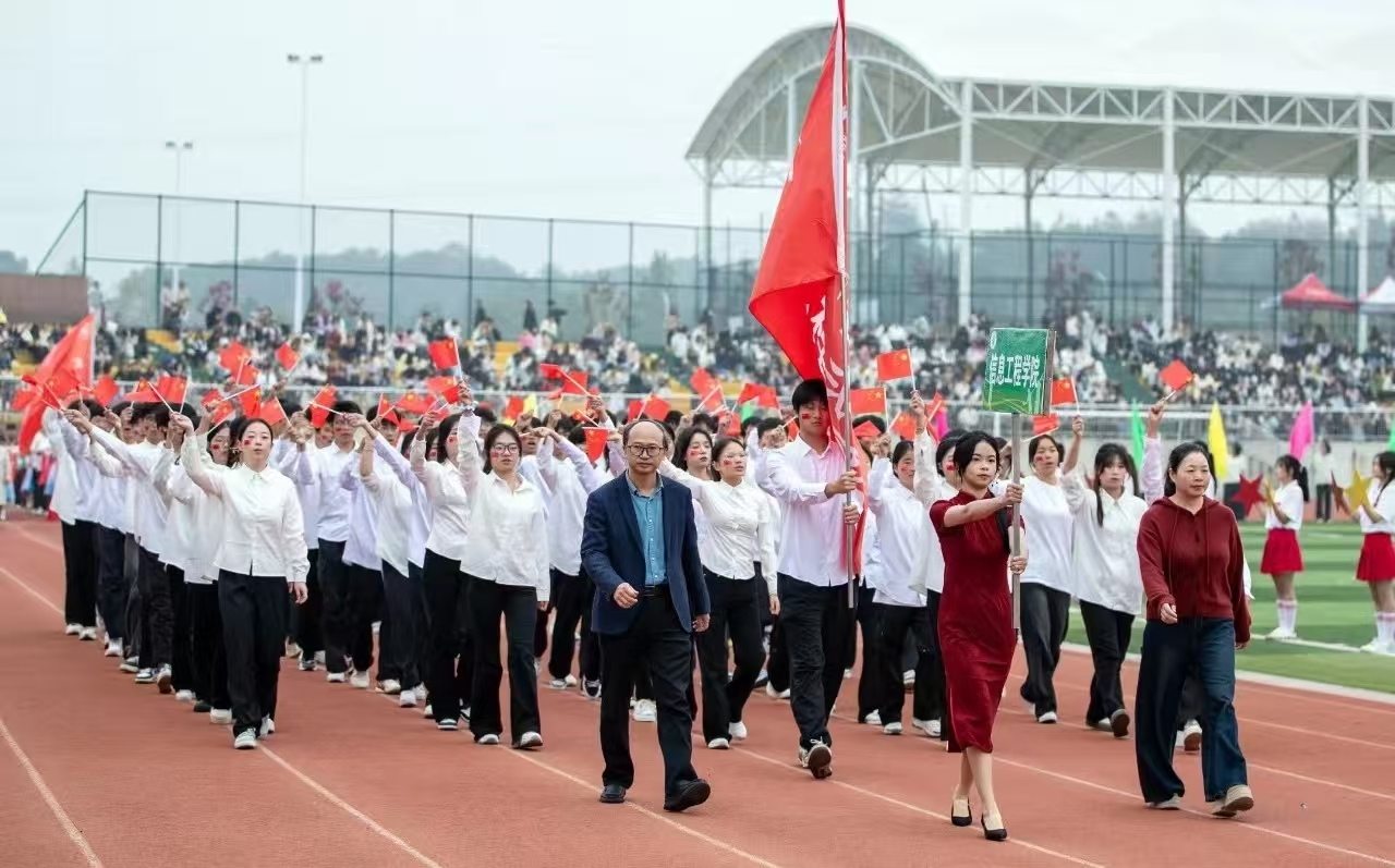 伴随着雄壮的国歌声,鲜艳的五星红旗冉冉升起,全体师生肃立行注目礼。李铁刚致开幕辞,他围绕三方面,与师生交流共勉:一是体育是力量的角逐,更是精神的绽放。学校一直以来坚持“健康第一、全面发展”理念,持续深化体育教学改革,完善体育设施建设,开展阳光体育活动,在各级各类赛事中取得优异成绩,彰显了宜职人“发强刚毅、生生不息”的精神风貌。二是赛场是青春的舞台,更是成长的课堂。他围绕此次赛事对全体运动员、裁判员、工作人员、志愿者提出具体要求,希望全体师生能在体育锻炼中享受乐趣、增强体质、健全人格、锤炼意志。三是奋斗是青春的底色,更是职教人的担当。希望师生把强健的体魄,坚韧的意志,永不放弃的奋斗精神融入学习生活、职业发展以及学校高质量发展各项工作中,努力成长为德技并修、身心双健的新时代工匠,奋力谱写中国式现代化的宜职篇章。