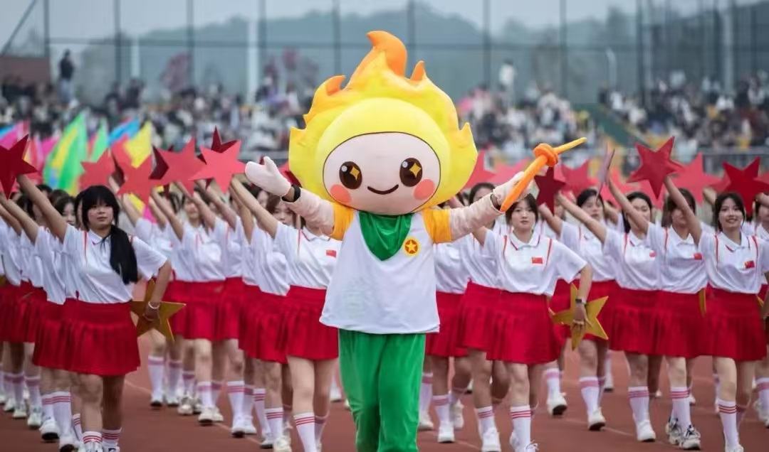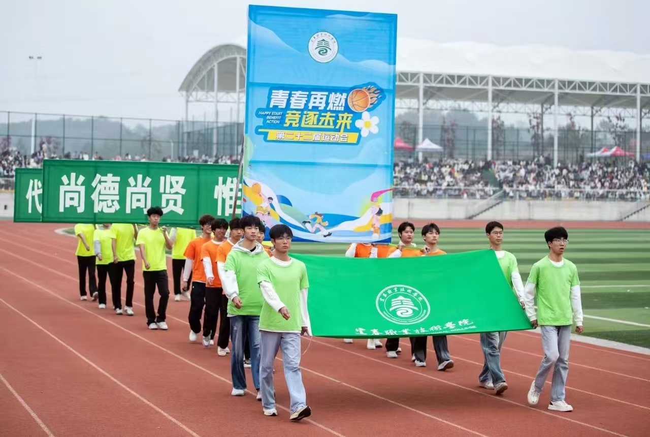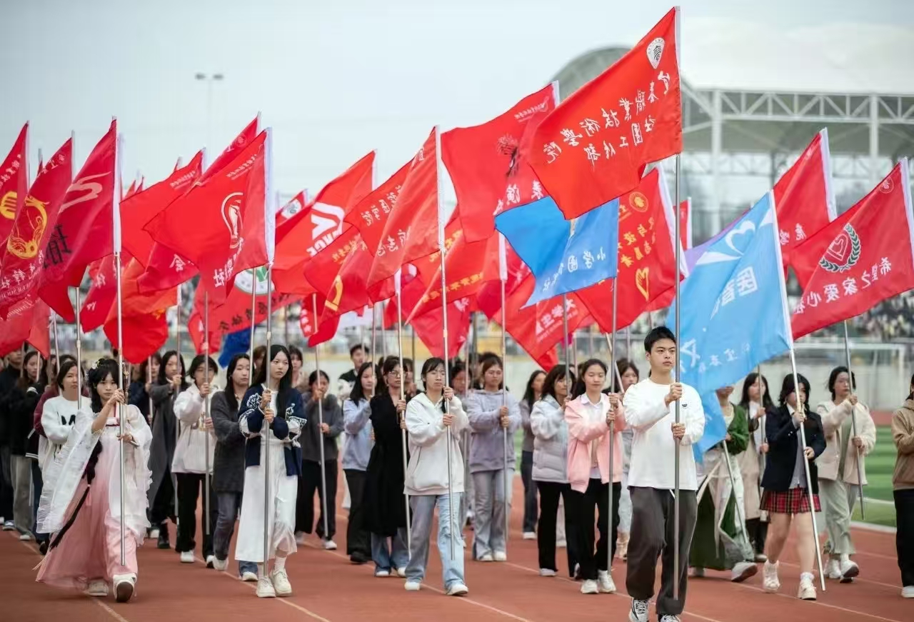 在激昂的运动员进行曲中,校国旗队迈着铿锵有力的步伐率先入场。紧随其后的是会徽队、标语队、星火队、彩旗队、社团会旗队、裁判员代表队,他们精神抖擞、神采飞扬。首次亮相的共青团吉祥物“宜小青”头顶火焰、手持火炬,成为全场瞩目的焦点,为开幕式注入青春活力。