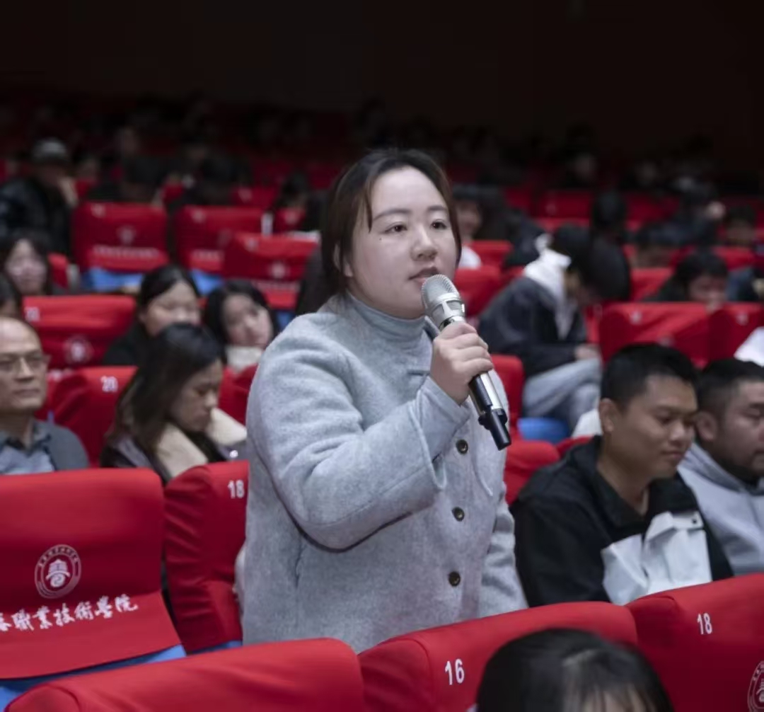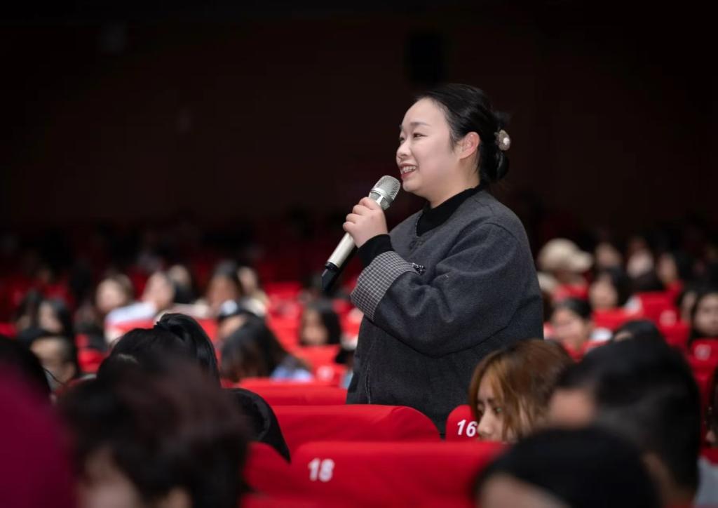 现场掌声阵阵。在随后的“爱国三问”及互动问答环节中,师生反响热烈,将全场气氛推向高潮。