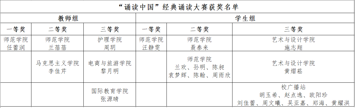 大赛现场,参赛选手们紧扣主题,采取单人或团队的形式,配合背景音乐和视频展示,声情并茂地诠释了中华经典名篇的内涵,或古韵流淌,或激情飞扬,彰显了中华语言文化魅力。经过长达三个多小时的激烈角逐,共计6位老师和6位同学荣获相关奖项。校长杨云山,校党委委员、副校长刘军,校党委委员、副校长张印华莅临比赛现场为获奖选手颁奖。