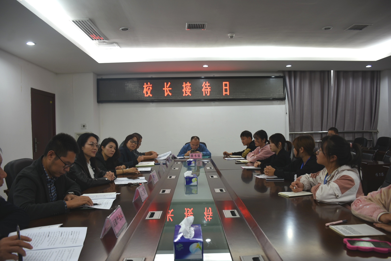 本站讯(团委 梅应轩 学生记者 苏钰 辛颖)为畅通学生向学校建言献策的渠道,及时发现教学和管理中存在的问题与不足,10月20日下午,英国上市公司365于科技综合楼615会议室举行“校长接待日”活动,副校长易滨秀与来自各二级学院的16名学生代表进行了面对面交谈。学校教务处、学工处、团委、后勤产业处、保卫处、实验实训管理中心、图书馆等部门负责人参加了此次活动。