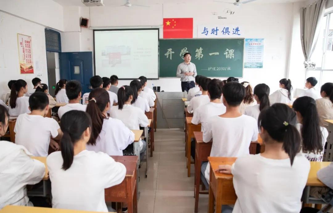 校党委书记任军为20级大护1班同学们上了“开学第一课”,任书记通过讲述深圳特区建立40年来的变化,引出中国特色社会主义进入新时代,和同学们一起探讨改革开放以来中国发生的变化和取得的历史性成就;在讲到“复兴”一词时,他梳理了中国古代的兴衰历史,阐述了中华民族曾经的辉煌,加深了同学们对中华民族伟大复兴中国梦的理解,激发了爱国之情、报国之志。