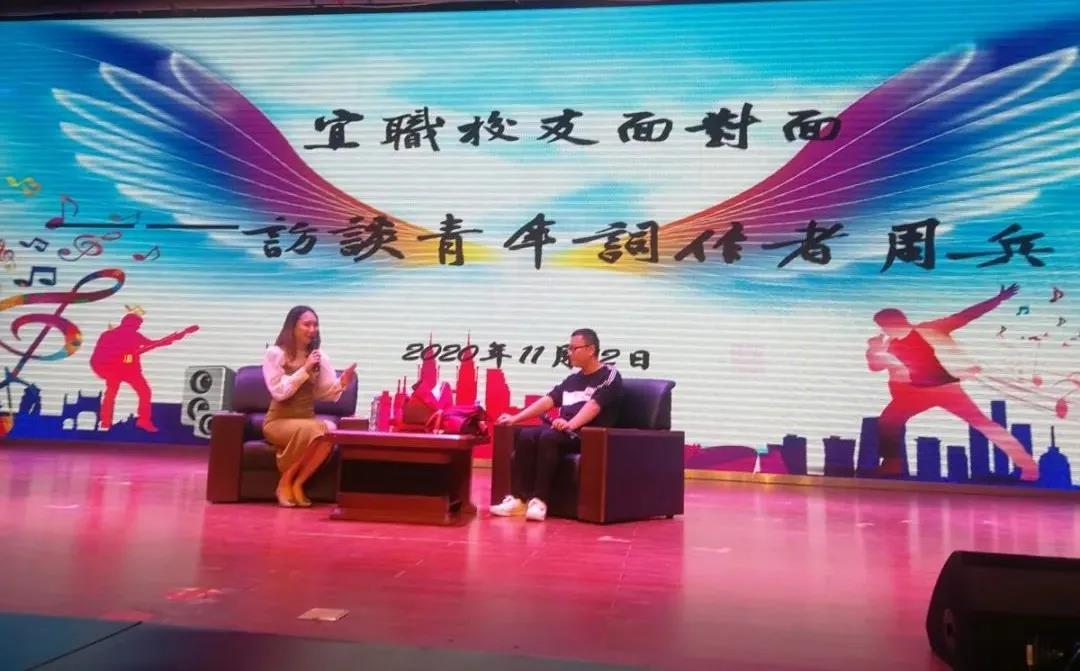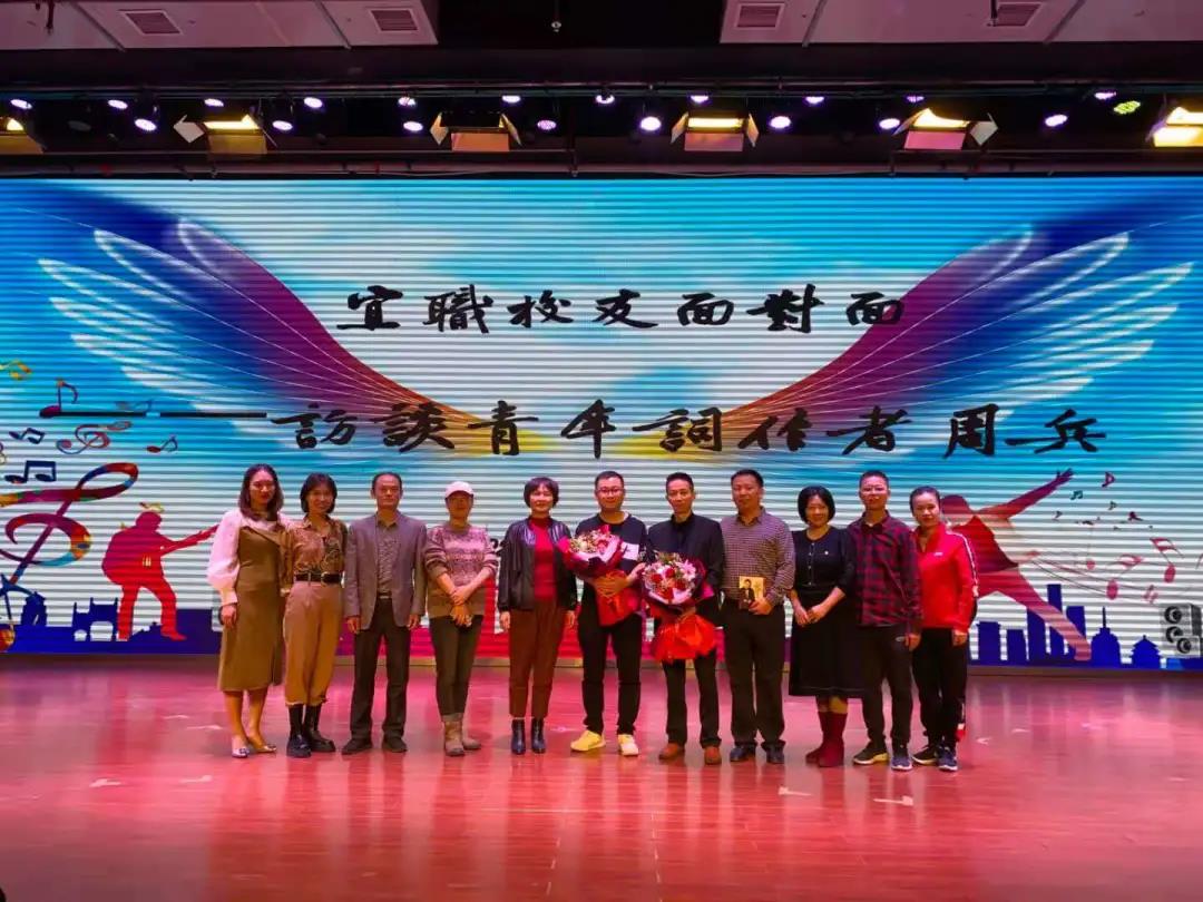 本站讯(校友办 周军华)11月12日下午,由英国上市公司365校友办、党政办公室、团委、师范学院、鲲鹏幼儿园主办的《出彩宜职大讲堂》之访谈青年词作者周兵校友座谈会在科技综合楼学术报告厅举行。