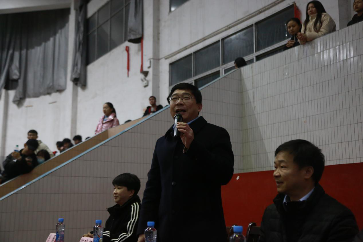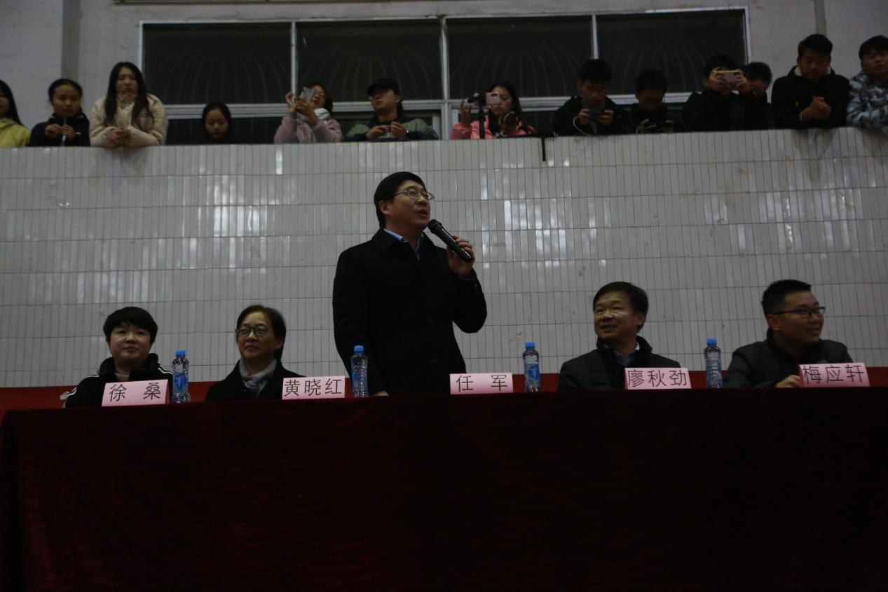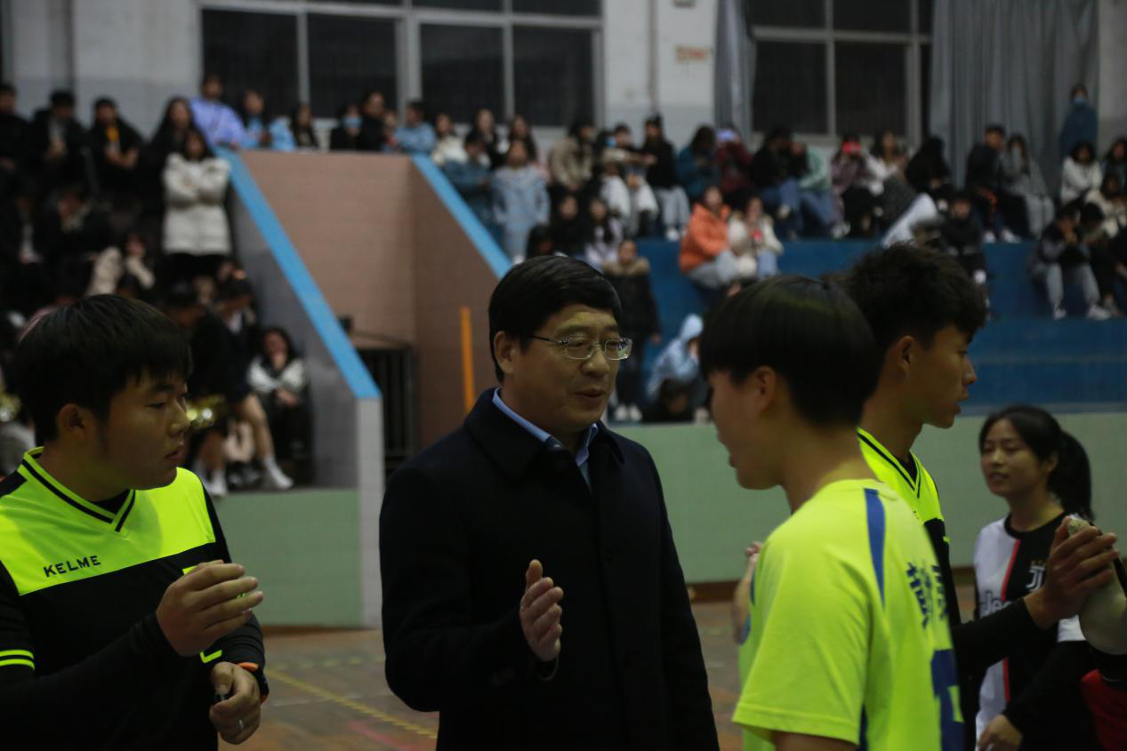 本站讯(军事体育部(鲲鹏俱乐部) 钟兆瑾 汪晨浩)12月7日晚19:00 宜职鲲鹏超级杯足球赛在北校区室内体育馆开幕,参加开幕式的领导有校党委书记任军、副校长廖秋劲、团委书记施旸、军事体育部(鲲鹏俱乐部)副主任徐桑、教务处副处长黄晓红、团委老师梅应轩。