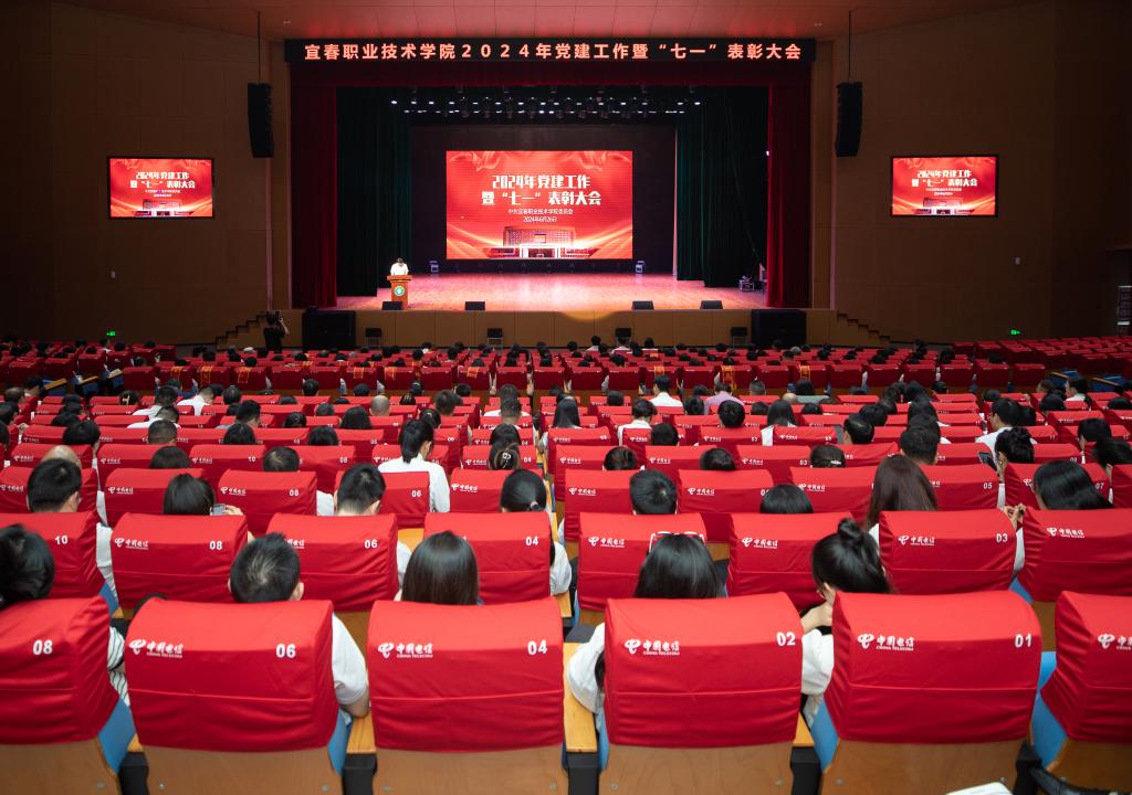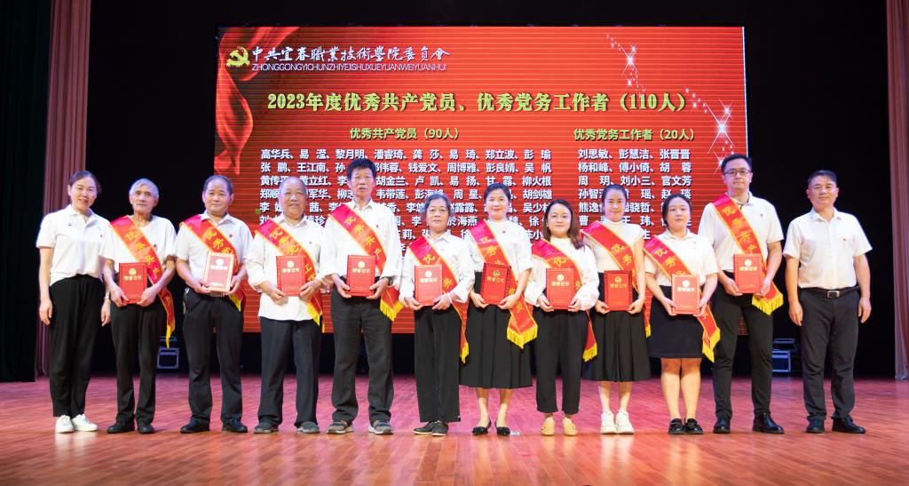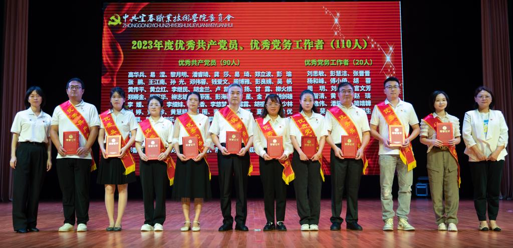 大会在庄严的国歌声中拉开帷幕。任军代表学校党委向受表彰的先进集体和个人表示热烈的祝贺,向为学校事业作出卓越贡献的老党员致以崇高的敬意,向全体师生党员致以节日的问候。他指出,2023年,学校党委带领全校党员干部和师生员工,以习近平新时代中国特色社会主义思想为指导,不断夯实党建工作基础,以创建“四强”党支部为契机,将党建与业务相融合,持续擦亮“出彩宜职”党建品牌。