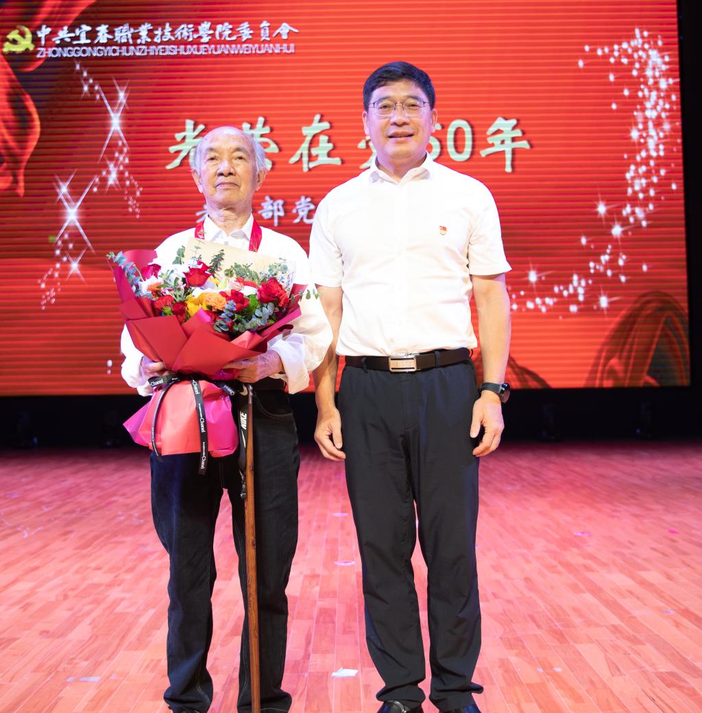李铁刚宣读了《关于表彰优秀共产党员、优秀党务工作者和先进基层党组织的决定》《关于优秀党建品牌评选结果的通报》。党委班子成员为2023年度“两优一先”、党建优秀品牌荣誉称号获得者颁奖。任军为“光荣在党50年”老党员汪锁清颁发纪念章、献花,现场响起一阵阵热烈的掌声。